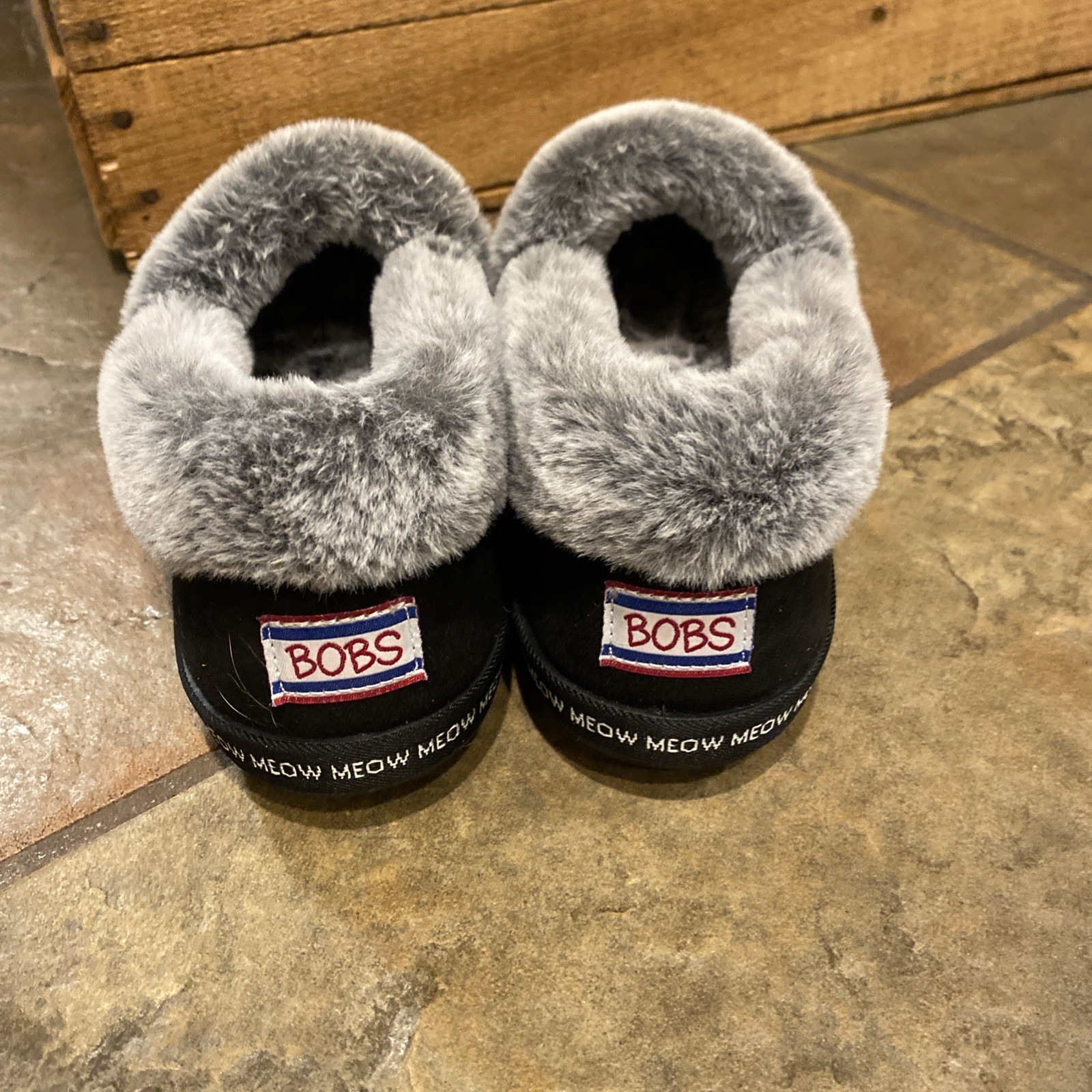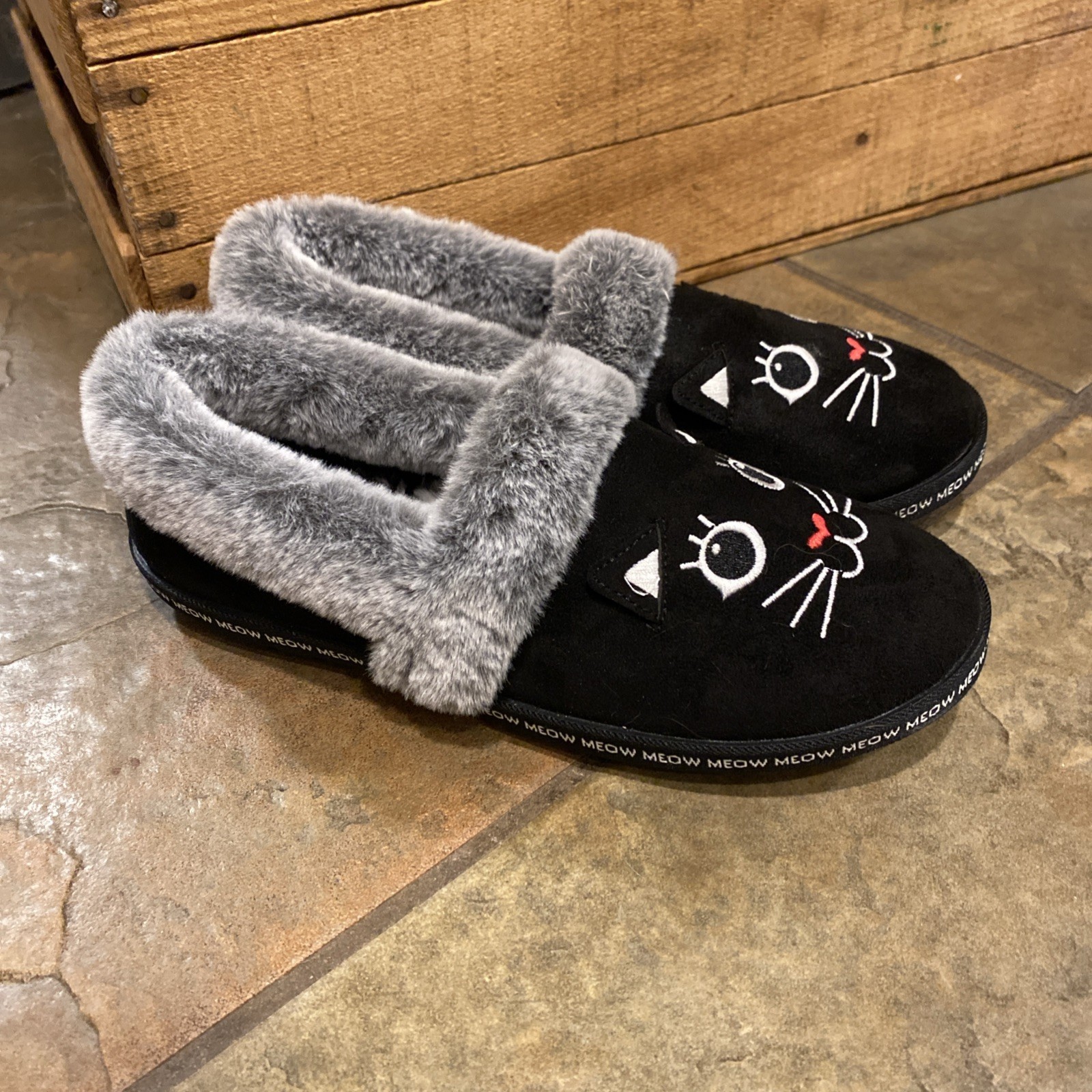 как выглядит Bobs by Skechers Womens Too Cozy Meow Cat Black Slippers-Size 9 фото