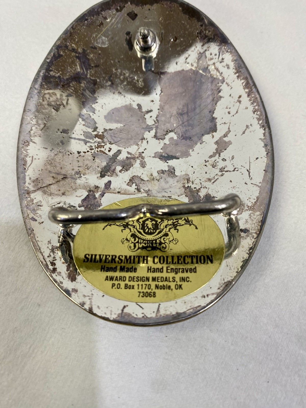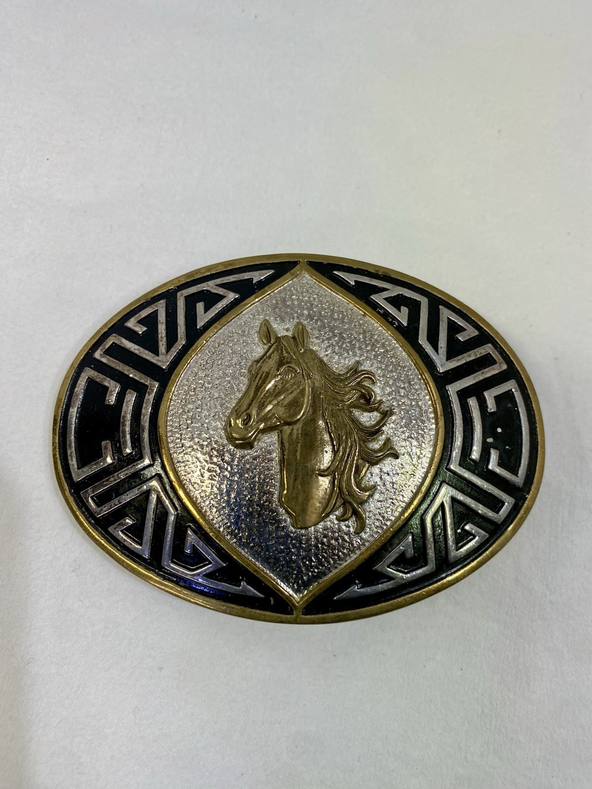 как выглядит Vintage Horse Head Belt Buckle Silversmith Collection Hand Engraved фото
