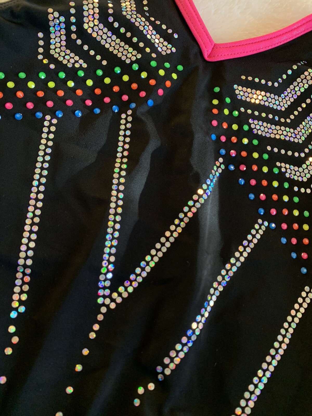 как выглядит New GK ELITE gymnastics Leotard VIBRANT CHEVRON Bling NEON DOTS Rainbow SIZE: AS фото