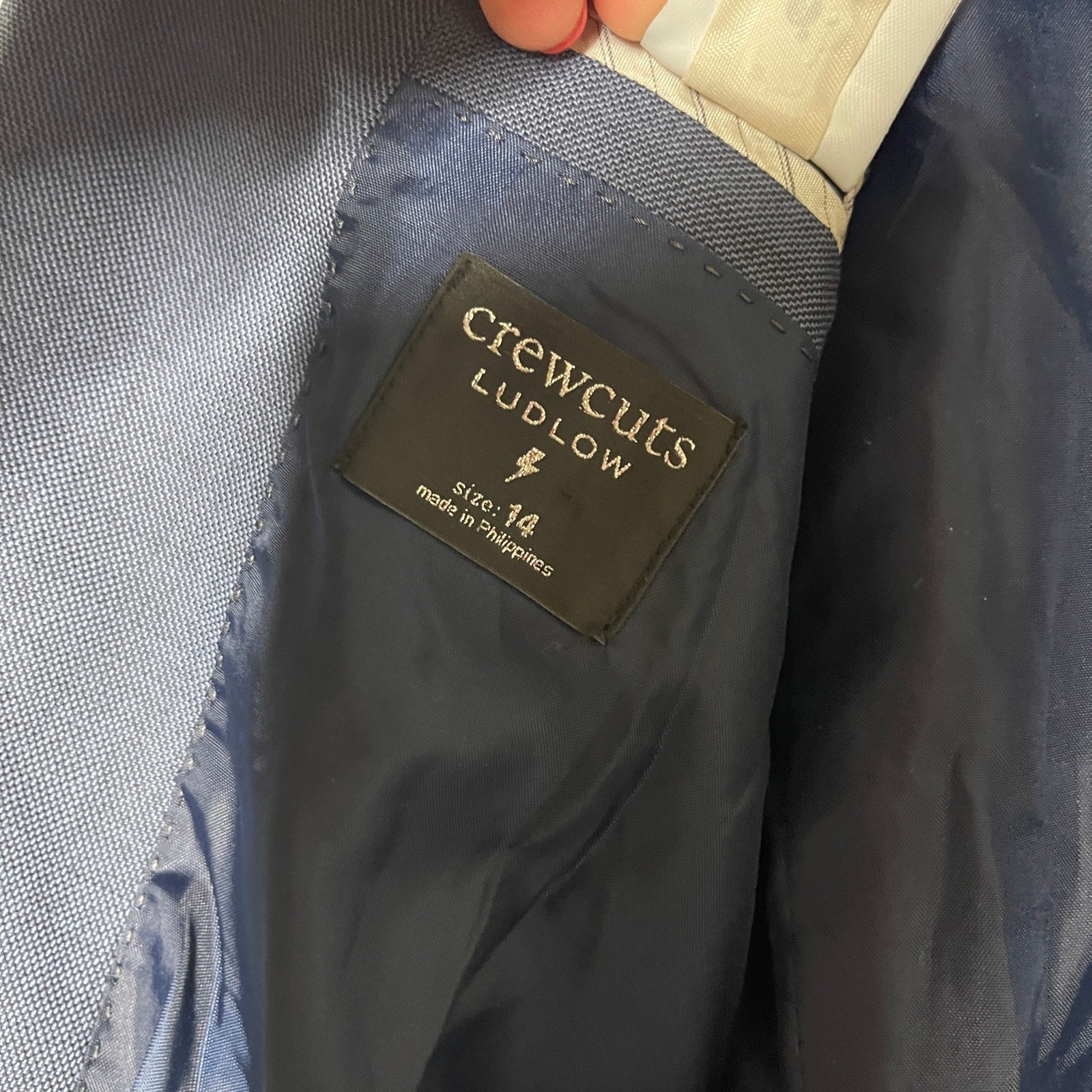 как выглядит Crewcuts J.Crew Boys Ludlow suit jacket stretch worsted wool blend in blue 14 фото