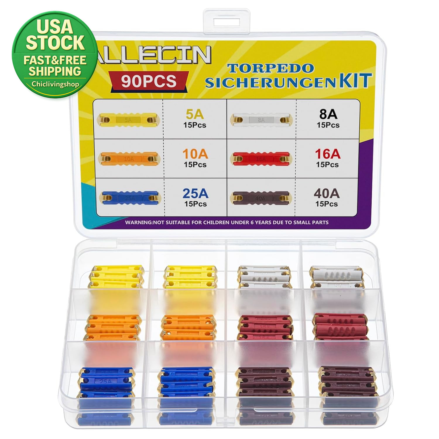 Torpedo Fuse Kit 5A 8A 10A 16A 25A 40A Automotive Fuse Set 90Pcs Classic Car