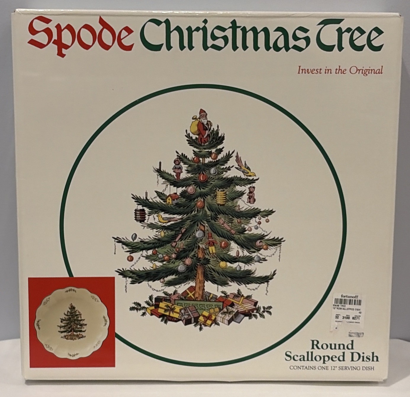 NIB VTG Spode Christmas Tree Pattern 12 Round Scalloped Dish England Rare NEW