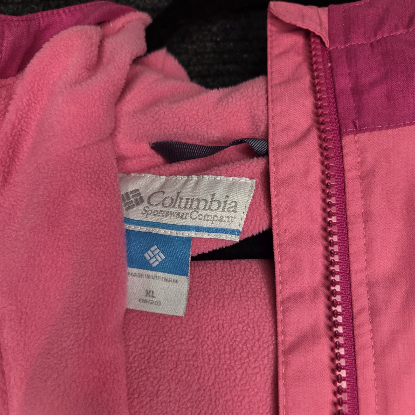 Columbia Girls Fleece Lined Windbreaker Jacket Full Zip, Pink, Size XL 18/20