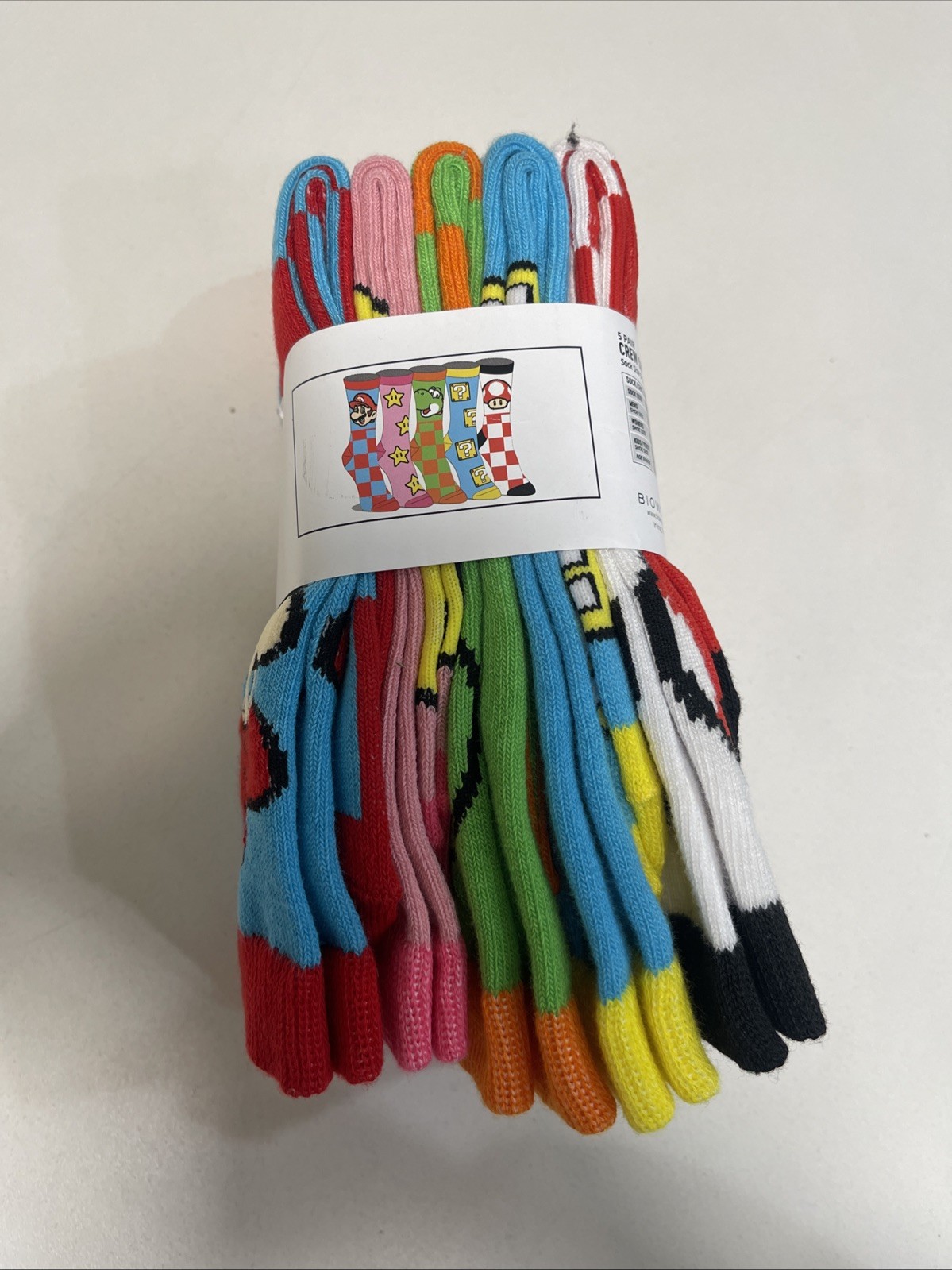как выглядит Bioworld Womens Super Mario Crew Socks 5-Pack Size 9-11 фото