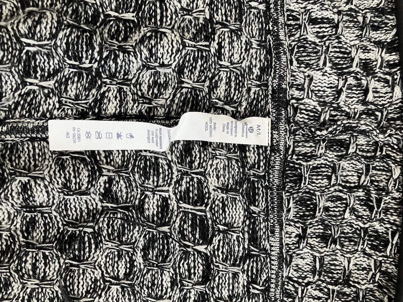 как выглядит Lululemon Cardi All Day Black / White Merino Wool Size M/L with Pockets фото