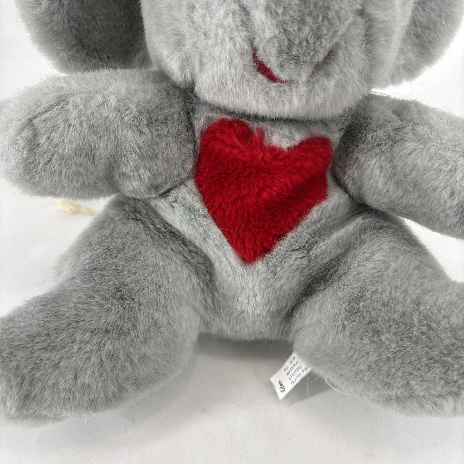 как выглядит Vintage Eden Gray Elephant Plush Red Heart On Chest Rope Tail Valentine 10" фото