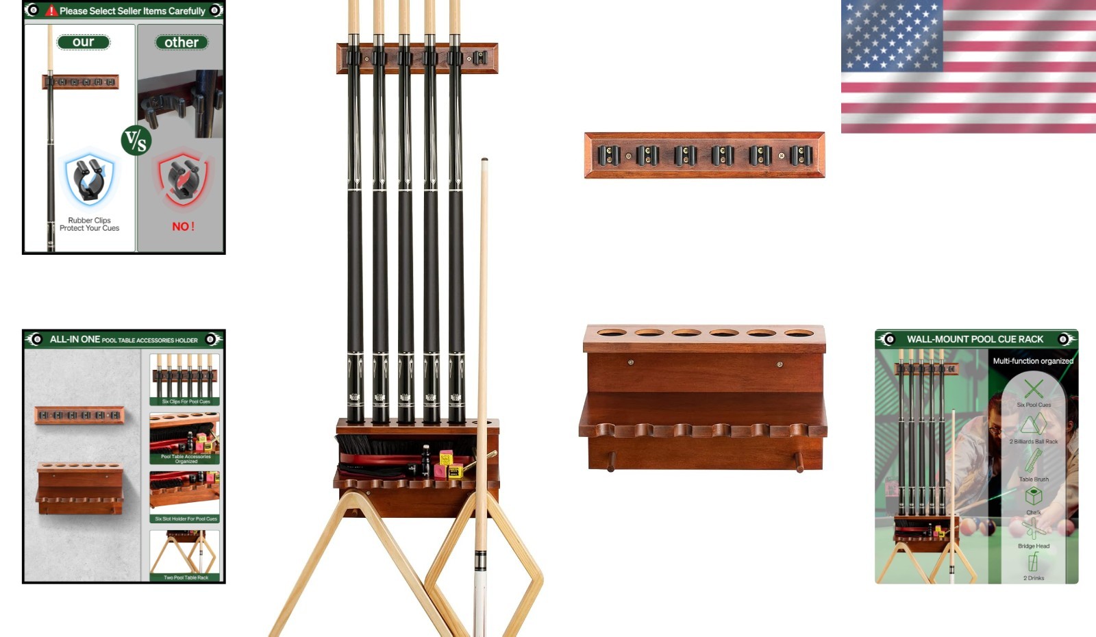 как выглядит Elegant Wall-Mount Oak Pool Cue Rack for 6 Cues - Stylish Game Room Organizer фото