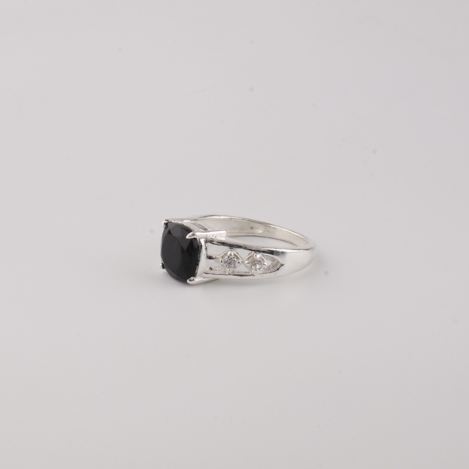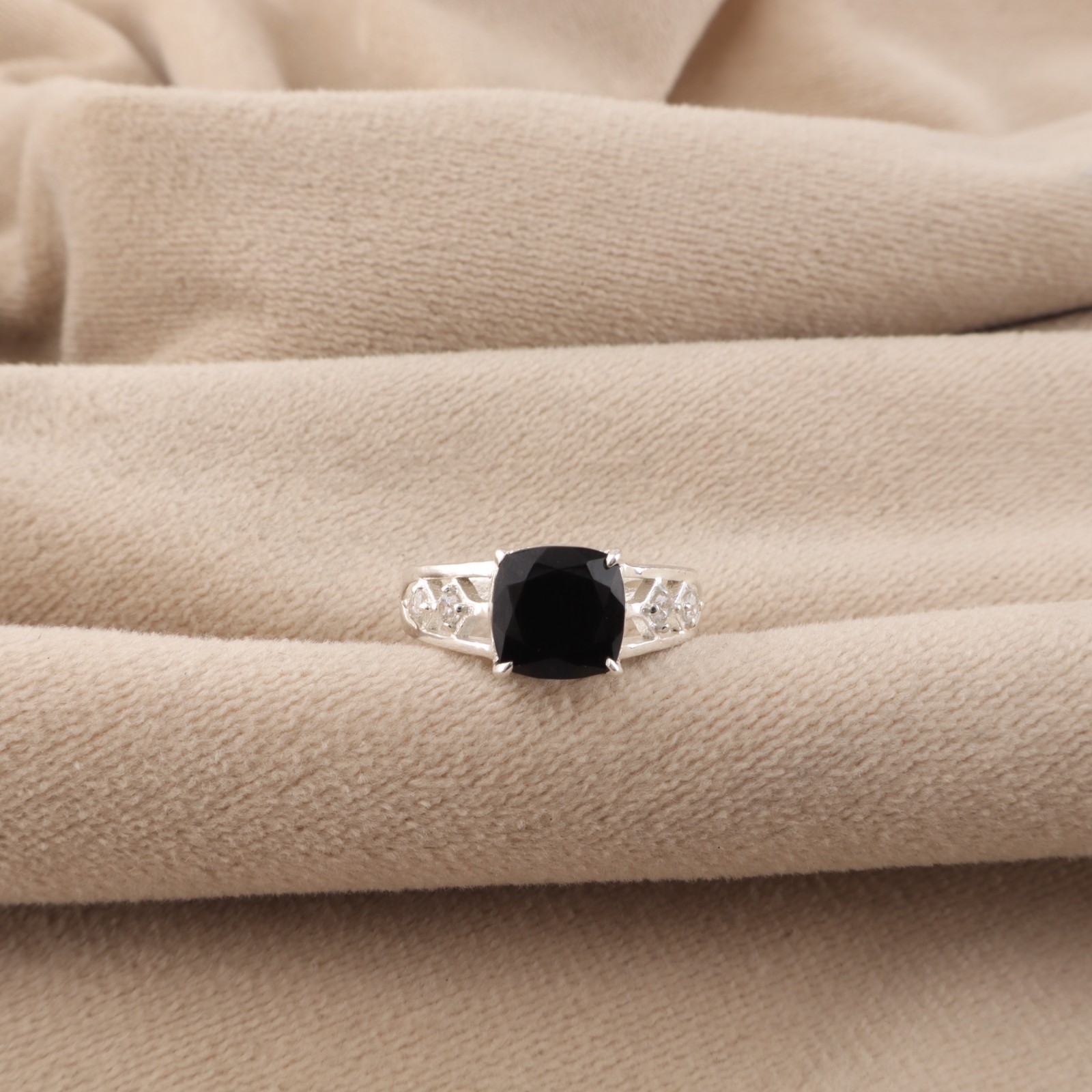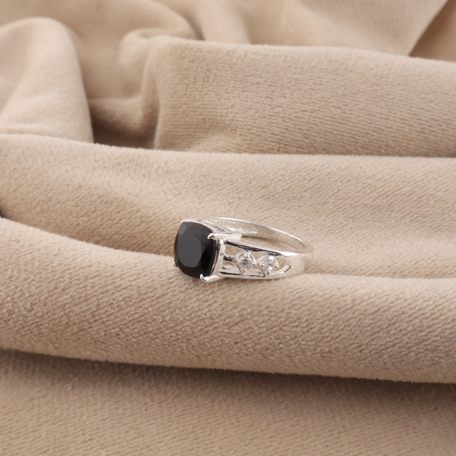 Black Onyx Gemstone 925 Sterling Silver Jewelry Zircon Ring July Birthstone Gift