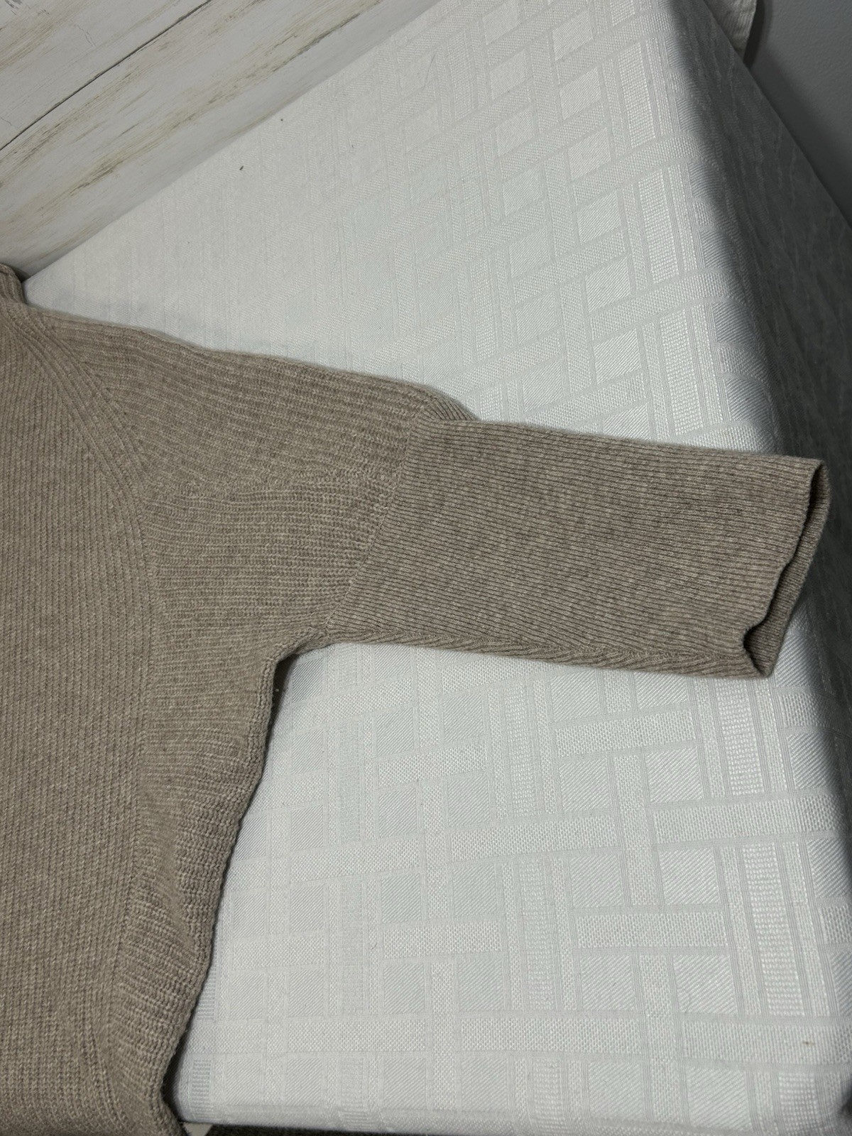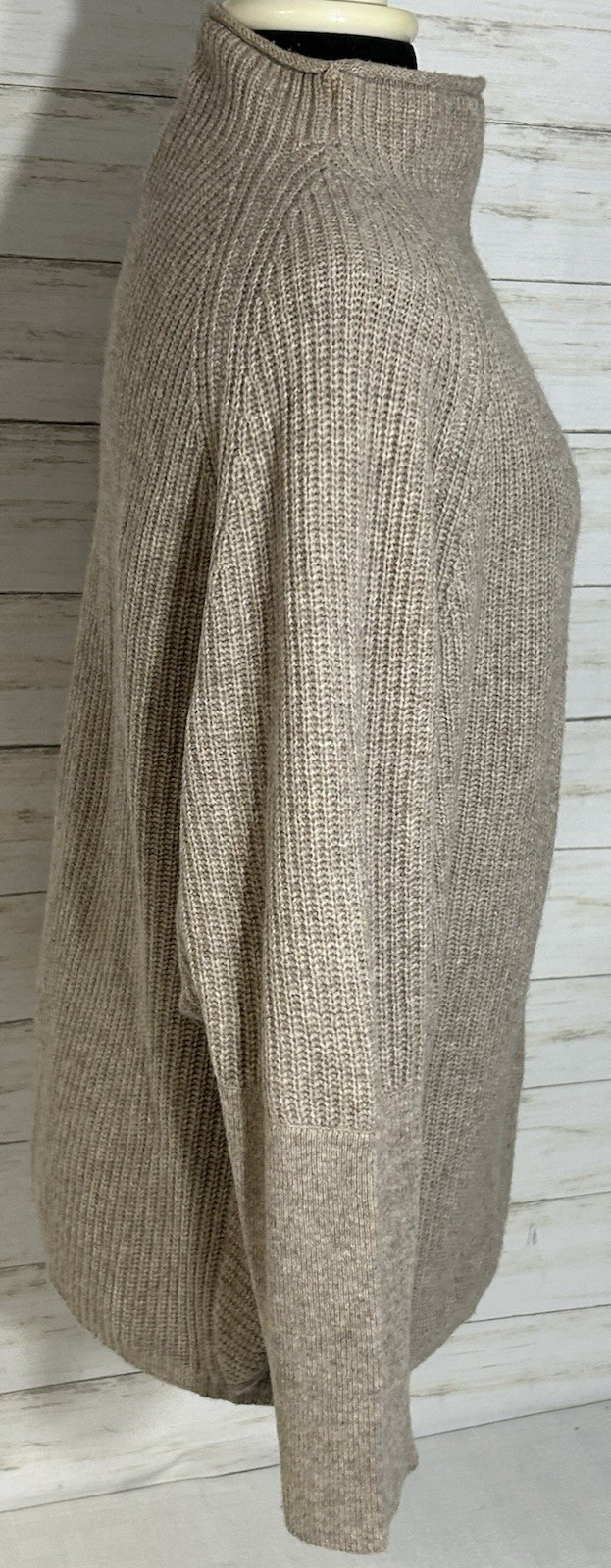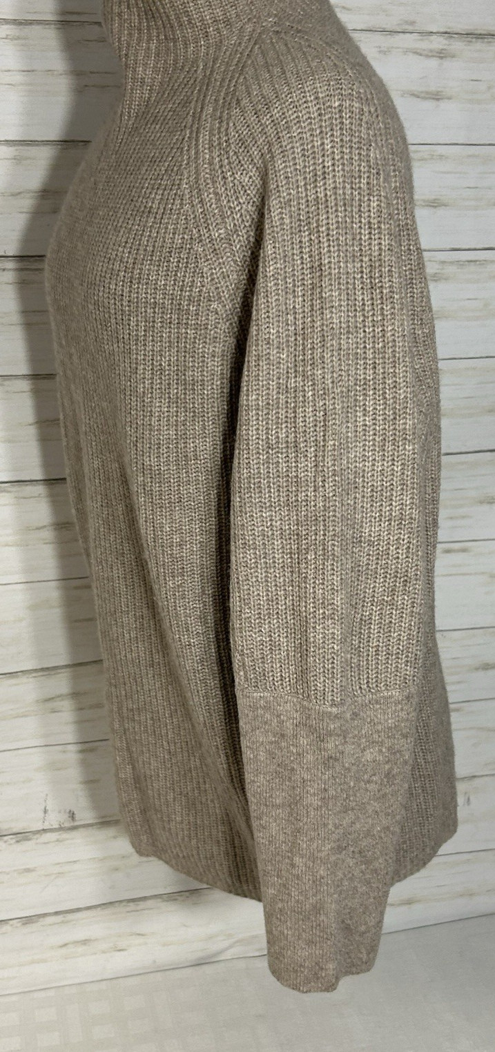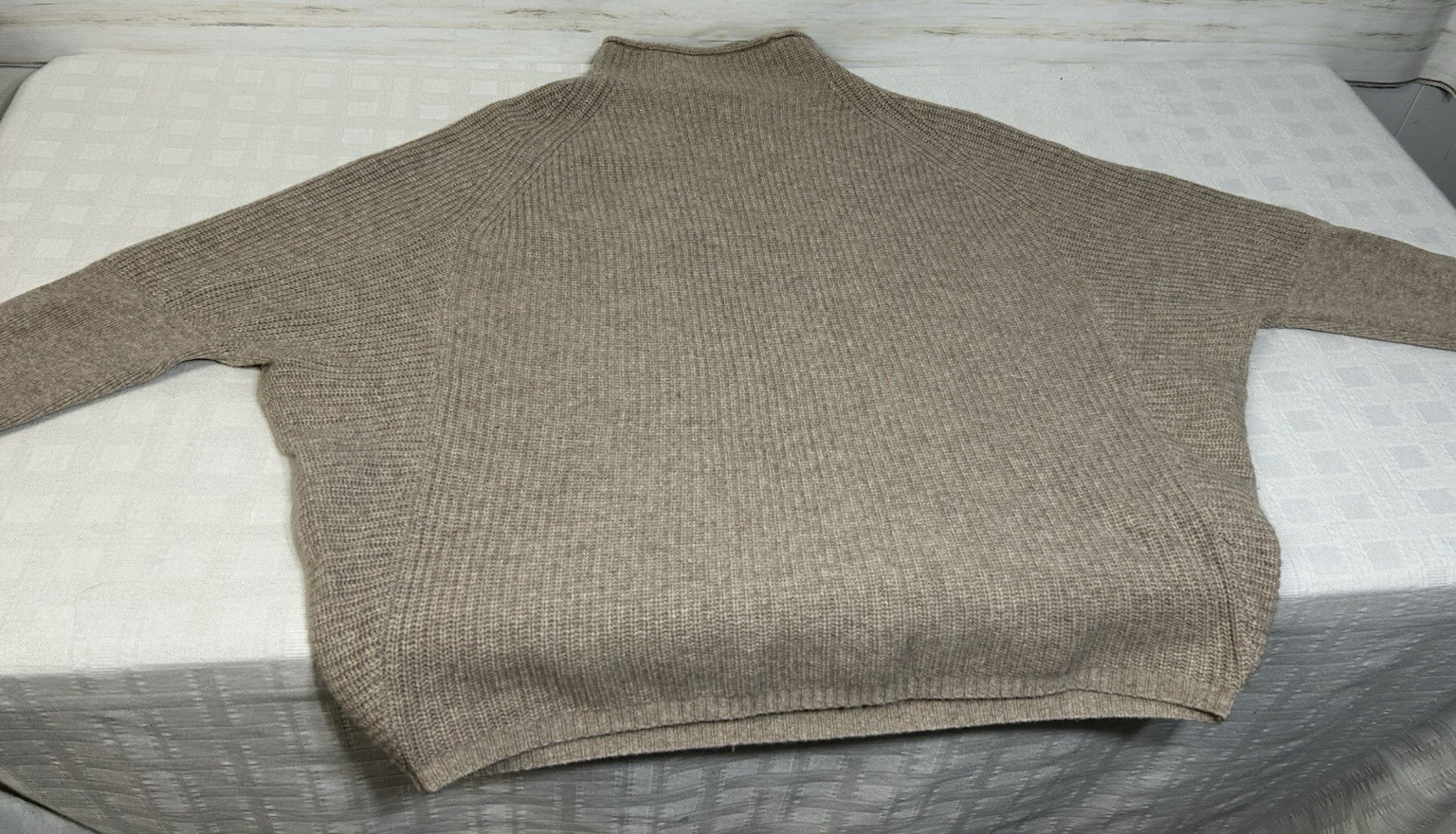 Magaschoni 100 Cashmere Sweater SMALL Taupe Brown Ribbed Funnel Neck Pullover