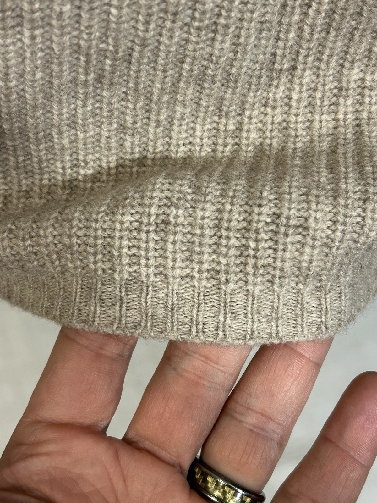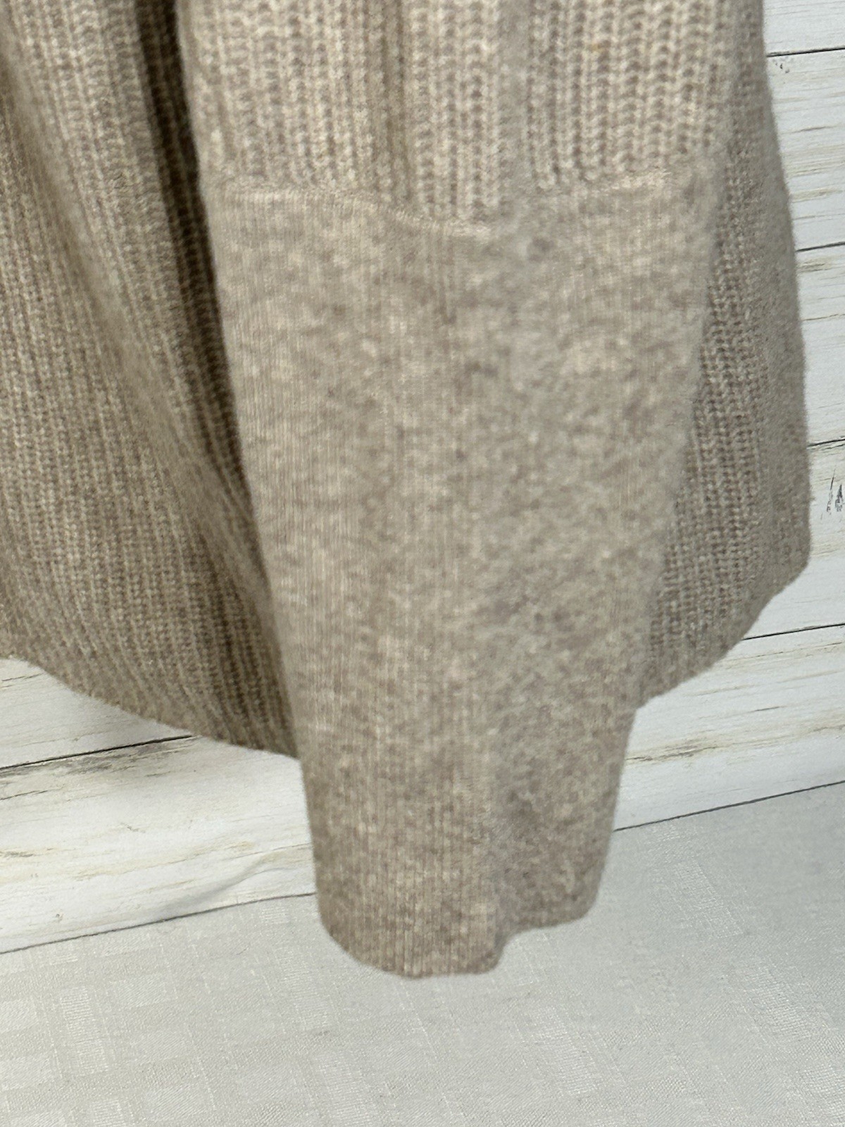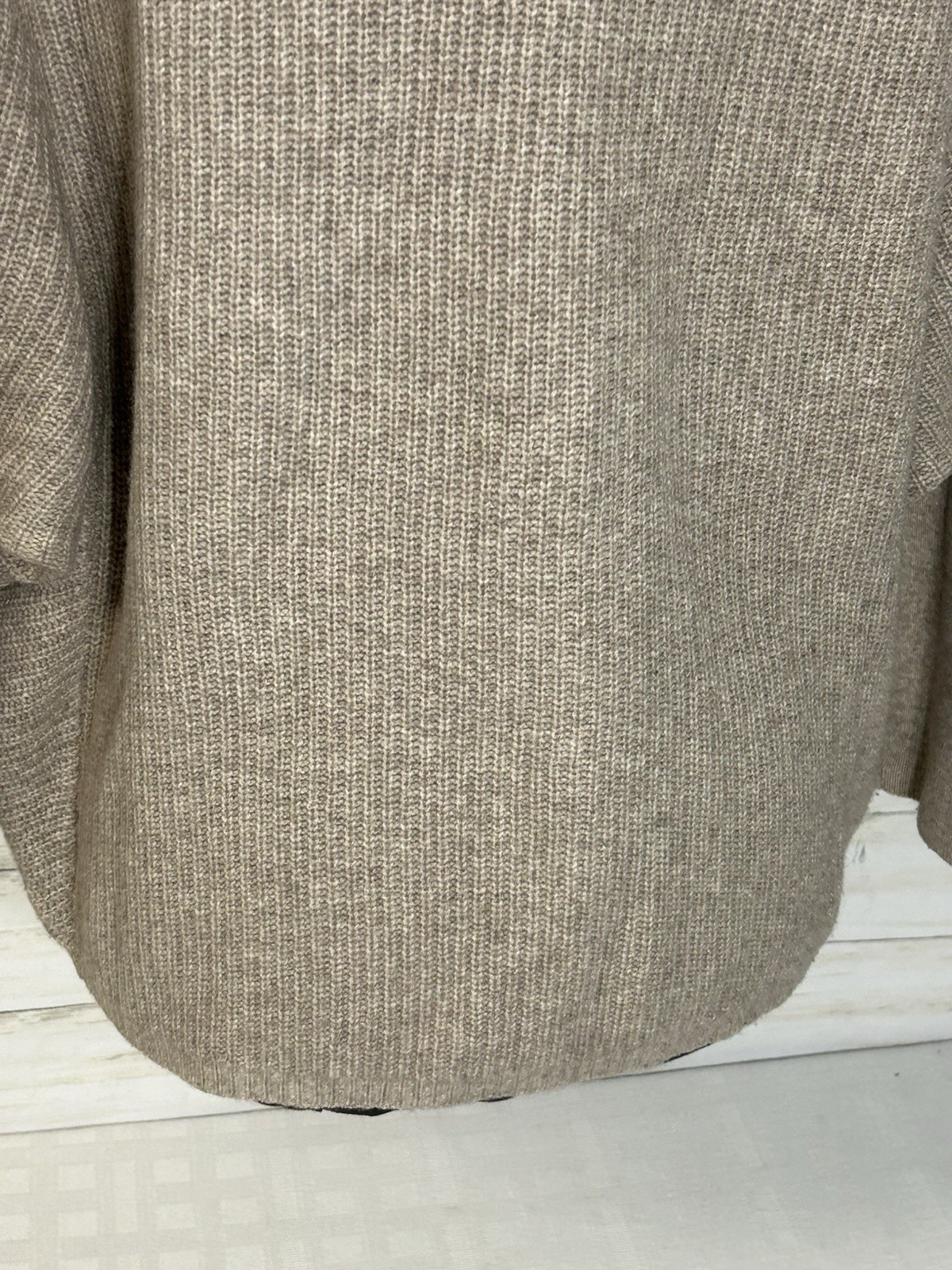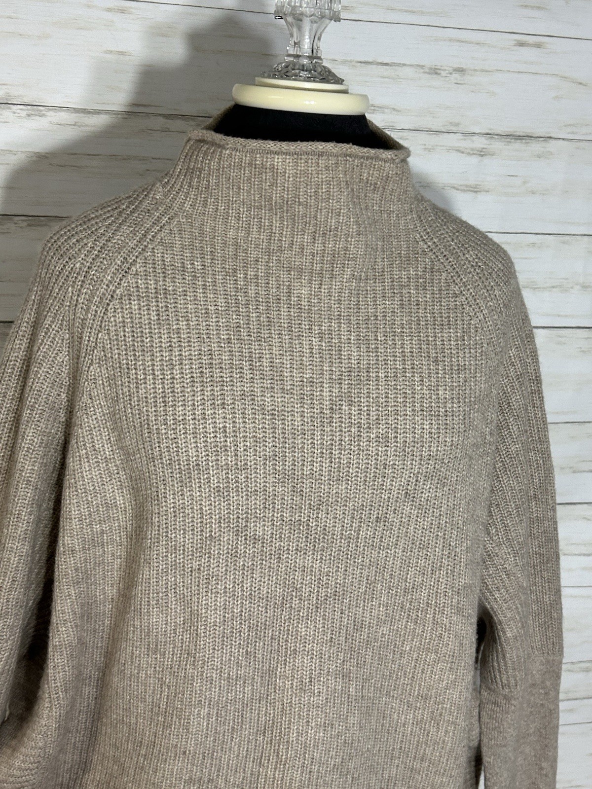 Magaschoni 100 Cashmere Sweater SMALL Taupe Brown Ribbed Funnel Neck Pullover