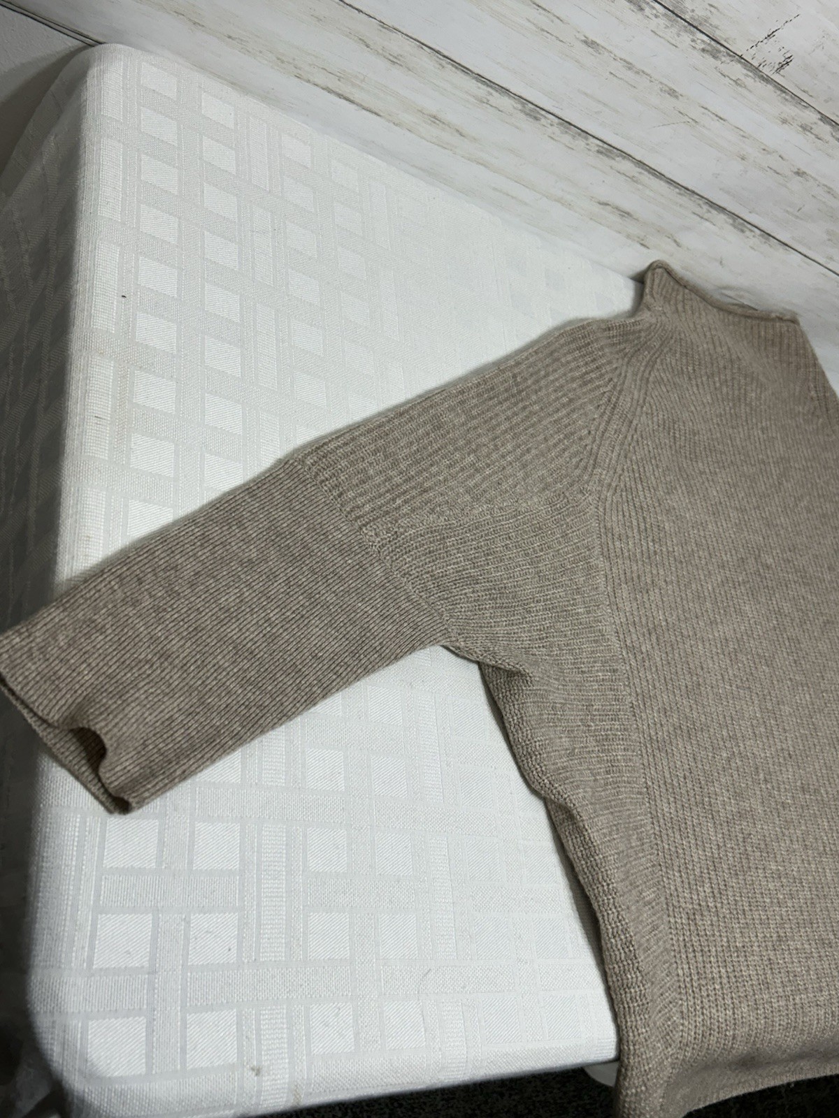 как выглядит Magaschoni 100 Cashmere Sweater SMALL Taupe Brown Ribbed Funnel Neck Pullover фото