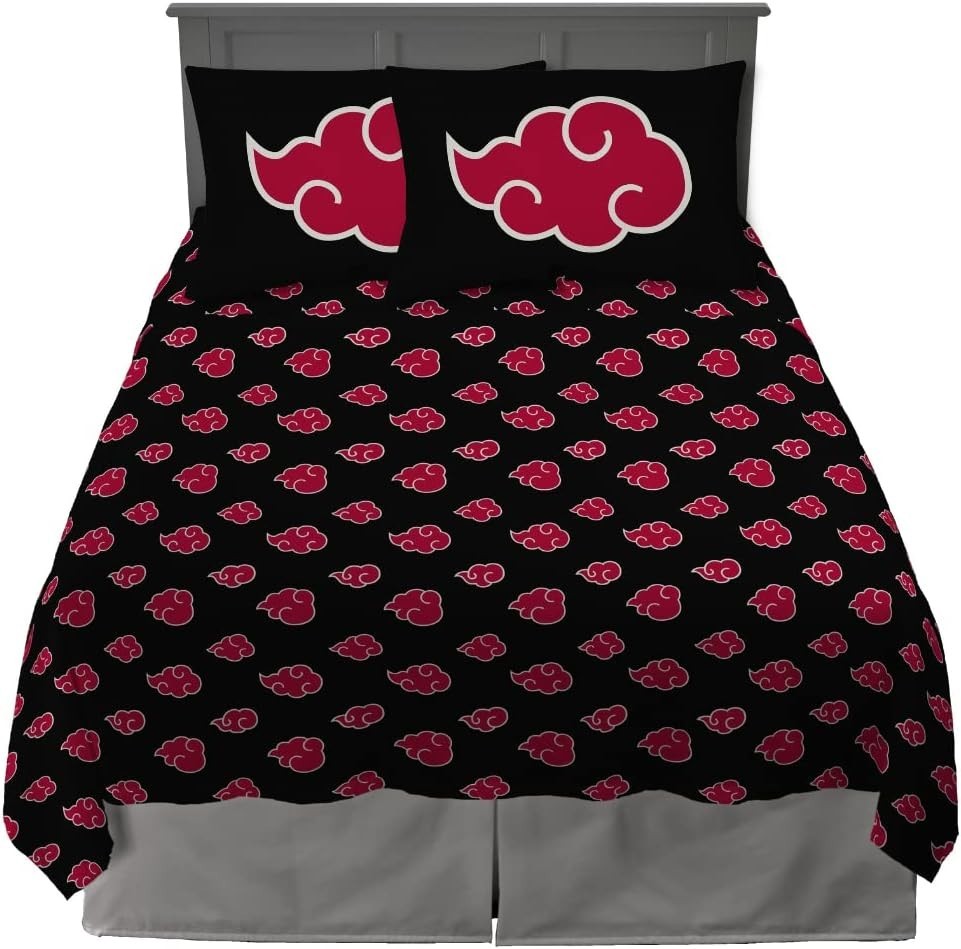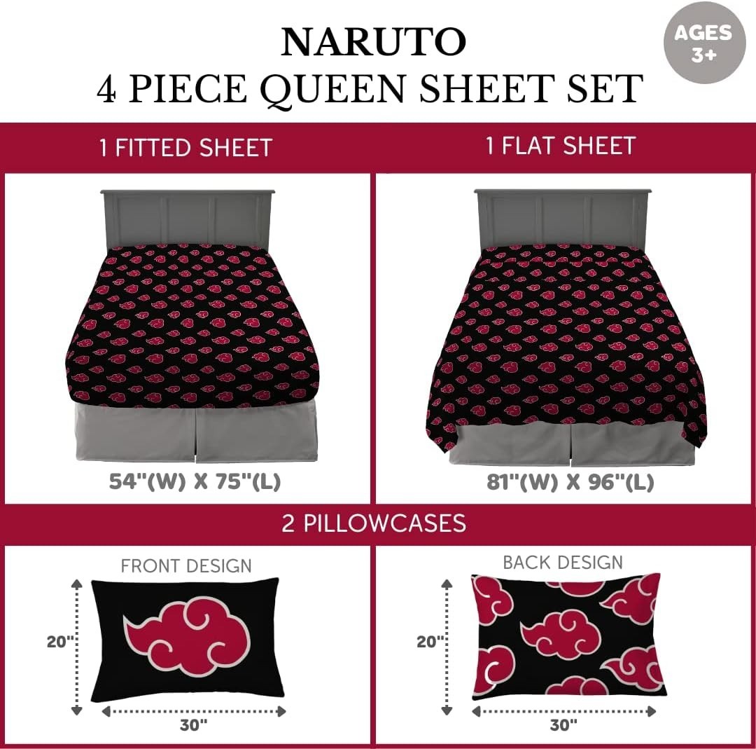 Anime Fantasy Queen Bed Set - Naruto Cloud Design, Machine Washable, 4-Piece