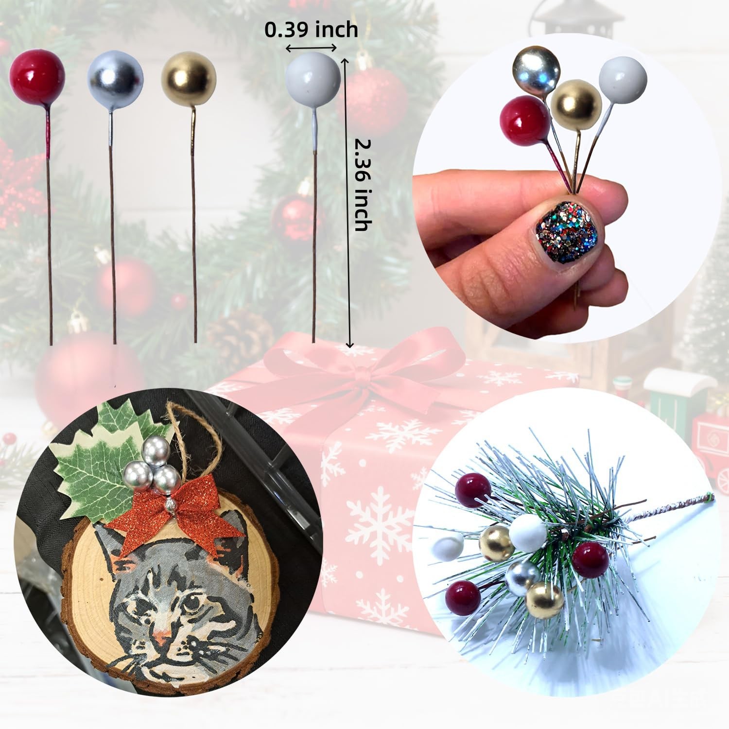 Artificial Holly Berries with Wire Stems, 400Pcs Red Mini Berry Picks, 10mm F...