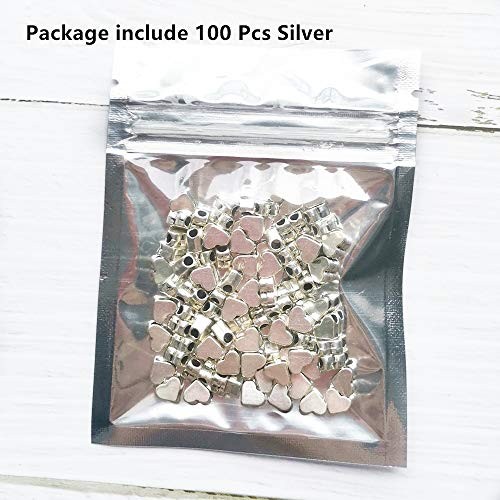 100 Pcs Heart Shape Spacer Beads Small Hole Spacer Beads Metal Loose Silver