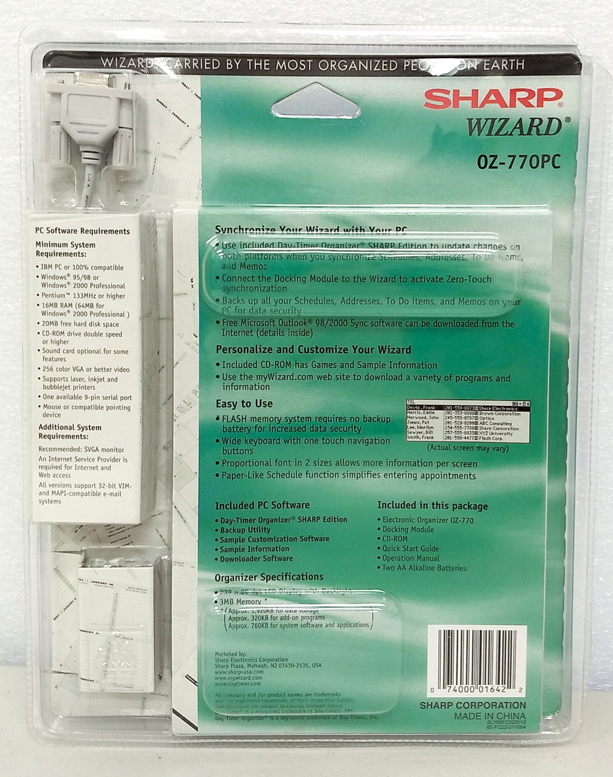 SHARP Wizard OZ-770PC Electronic Organizer Vintage NEW SEALED 0Z-770PC