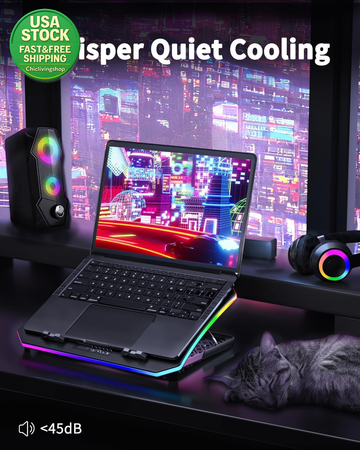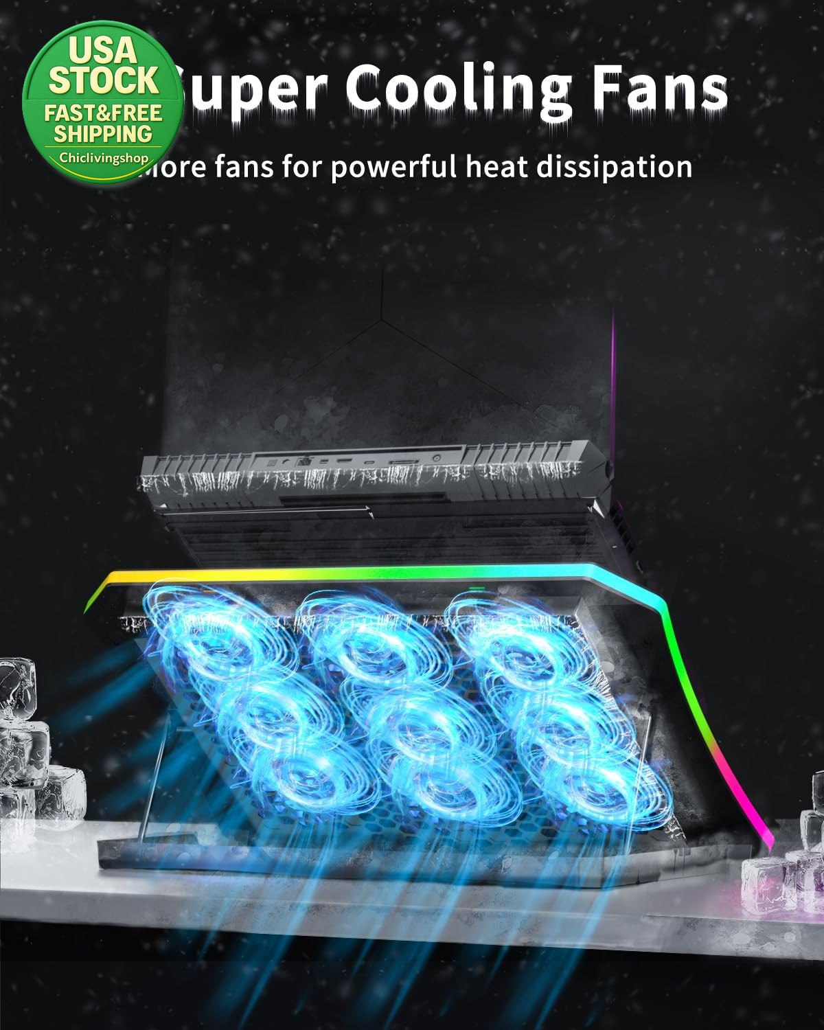 Gaming Laptop Cooler Pad 15.6-17.3 Inch 9 RGB Fans 7 Height Adjustable