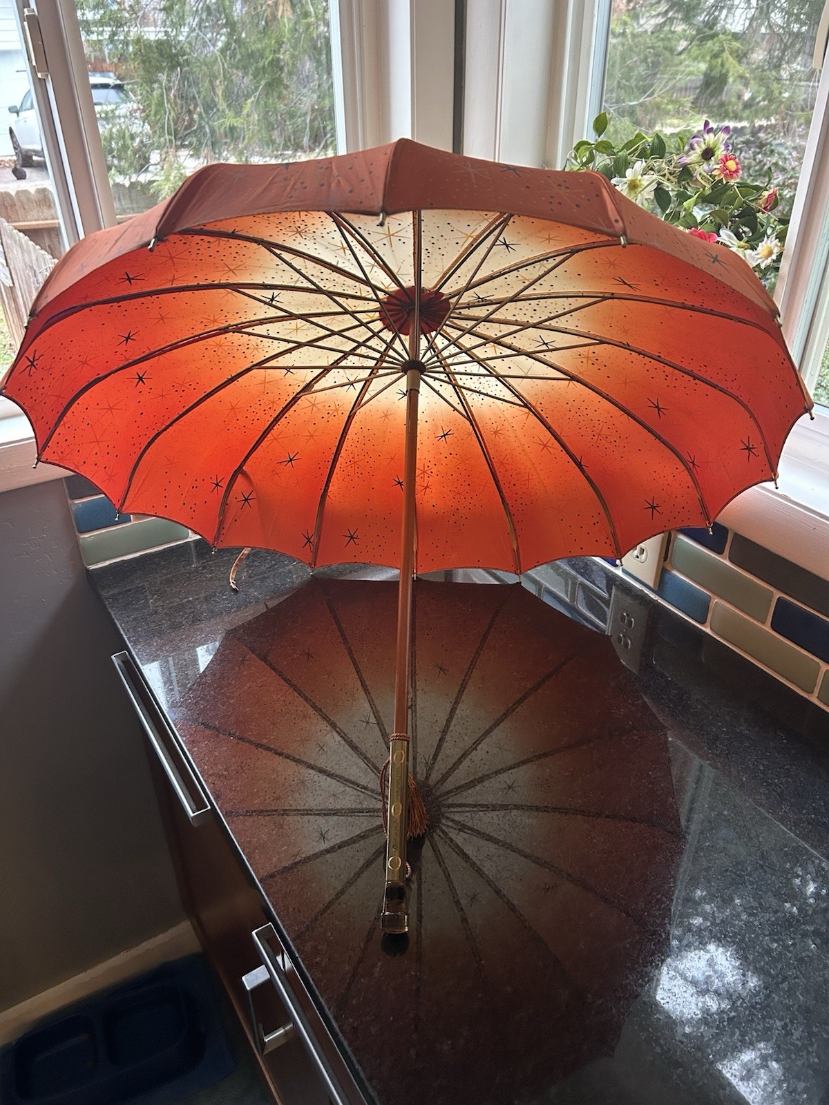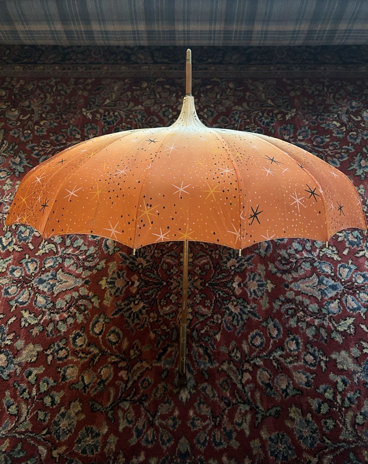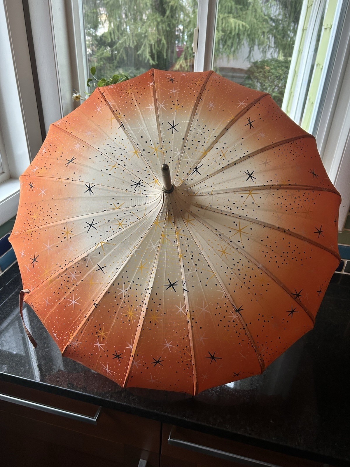 как выглядит Vintage Haas Jordan Umbrella Toledo 400 MCM Atomic Starburst 1950 s Excellent фото
