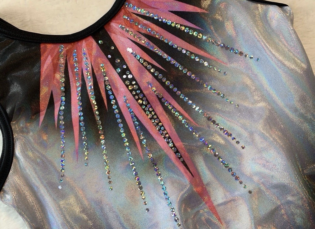 GK ELITE Gymnastics Leotard STRIKE A POSE DreamLite PINK BLACK Shimmer SIZE: AXS