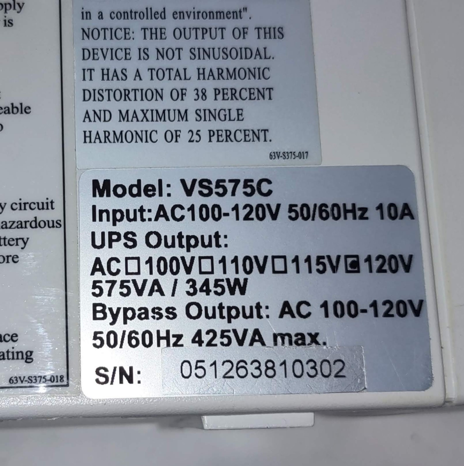 OPTI-UPS VS575C 575VA, 345W Uninterruptible Power Supply 6-Outlet ups Battery