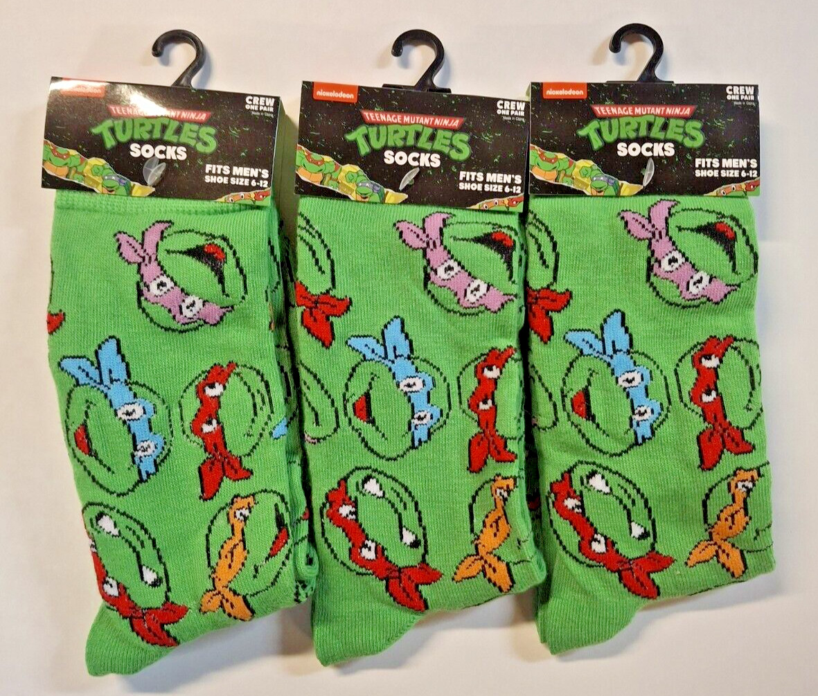 3 Pairs of Socks Teenage Mutant Ninja Turtles nickelodeon Adult 6 to 12