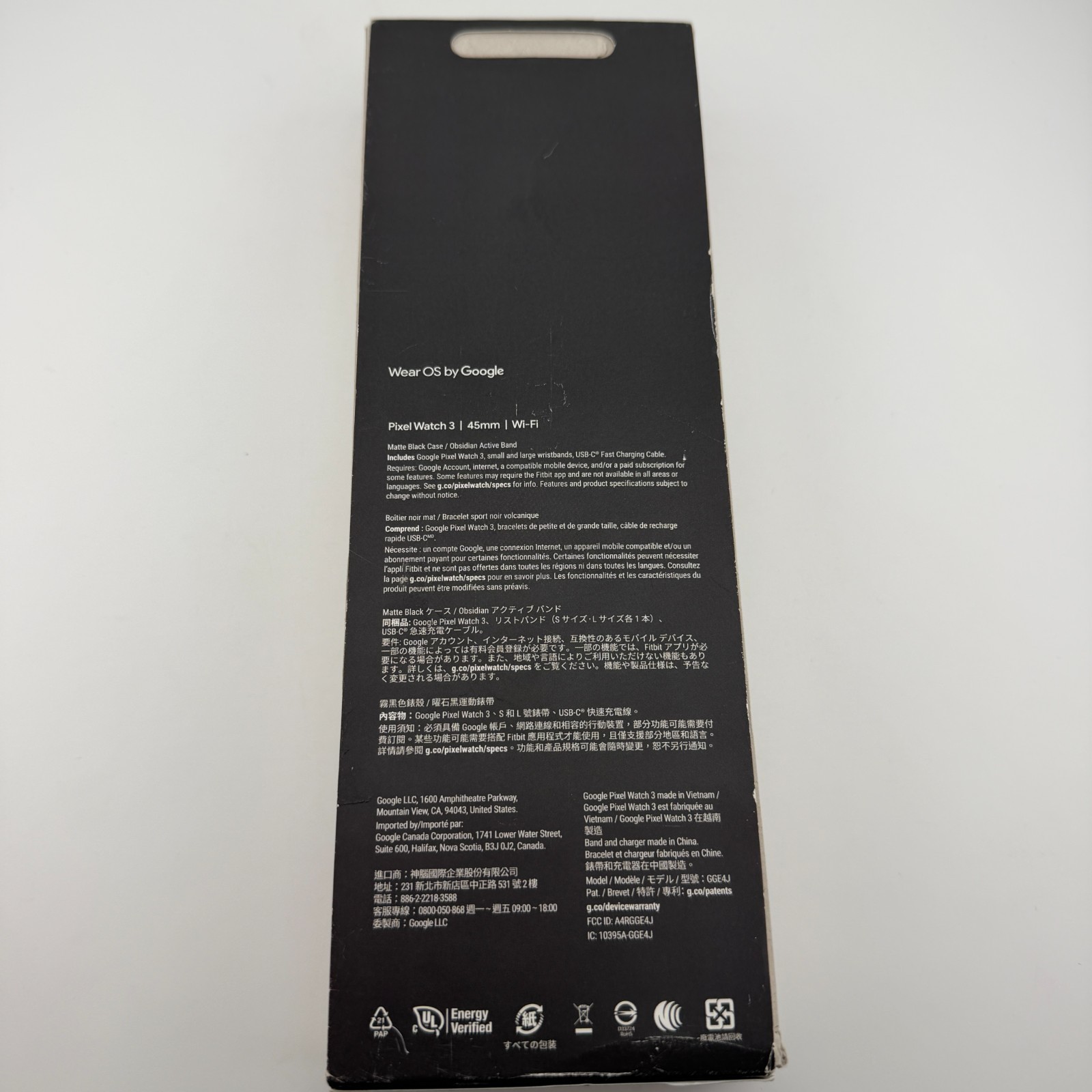 Google Pixel Watch 3 45mm WiFi GPS Obsidian Matte Black GA05785-US 3rd Gen 9K