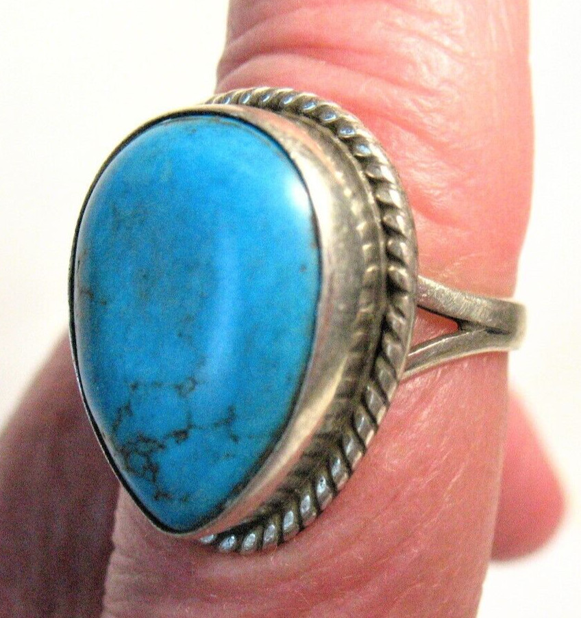 STERLING SILVER TURQUOISE WIDE RING SIZE 6.5 9 GRAMS
