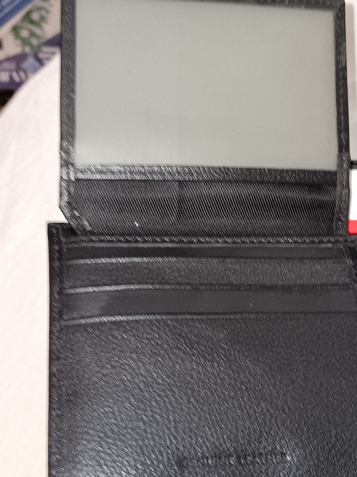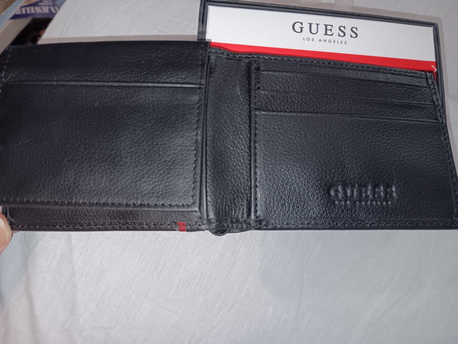как выглядит GUESS LOGO MENS BLACK LEATHER WITH RED ACCENTS BILLFOLD PHOTO ID WALLET 48 NIB фото
