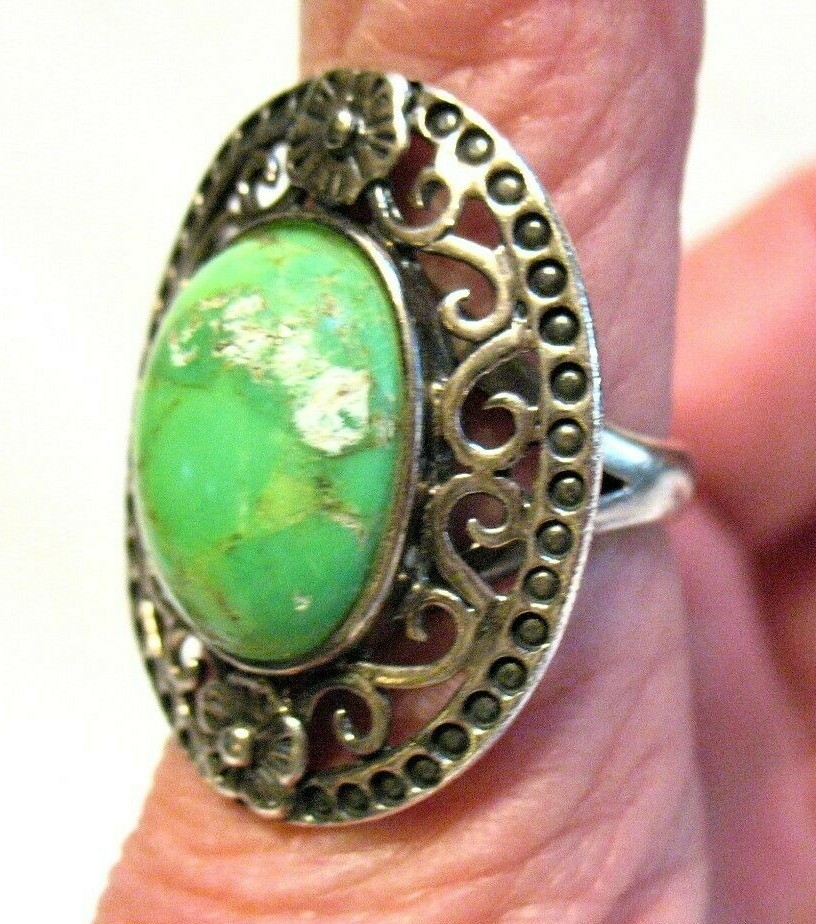 STERLING SILVER GREEN TURQUOISE RING VERY WIDE SIZE 7.25 9.8 GRAMS