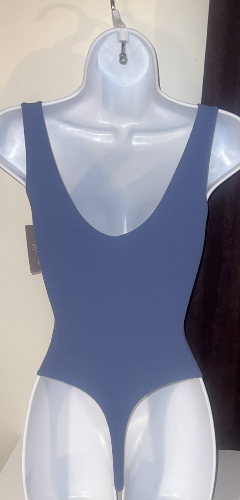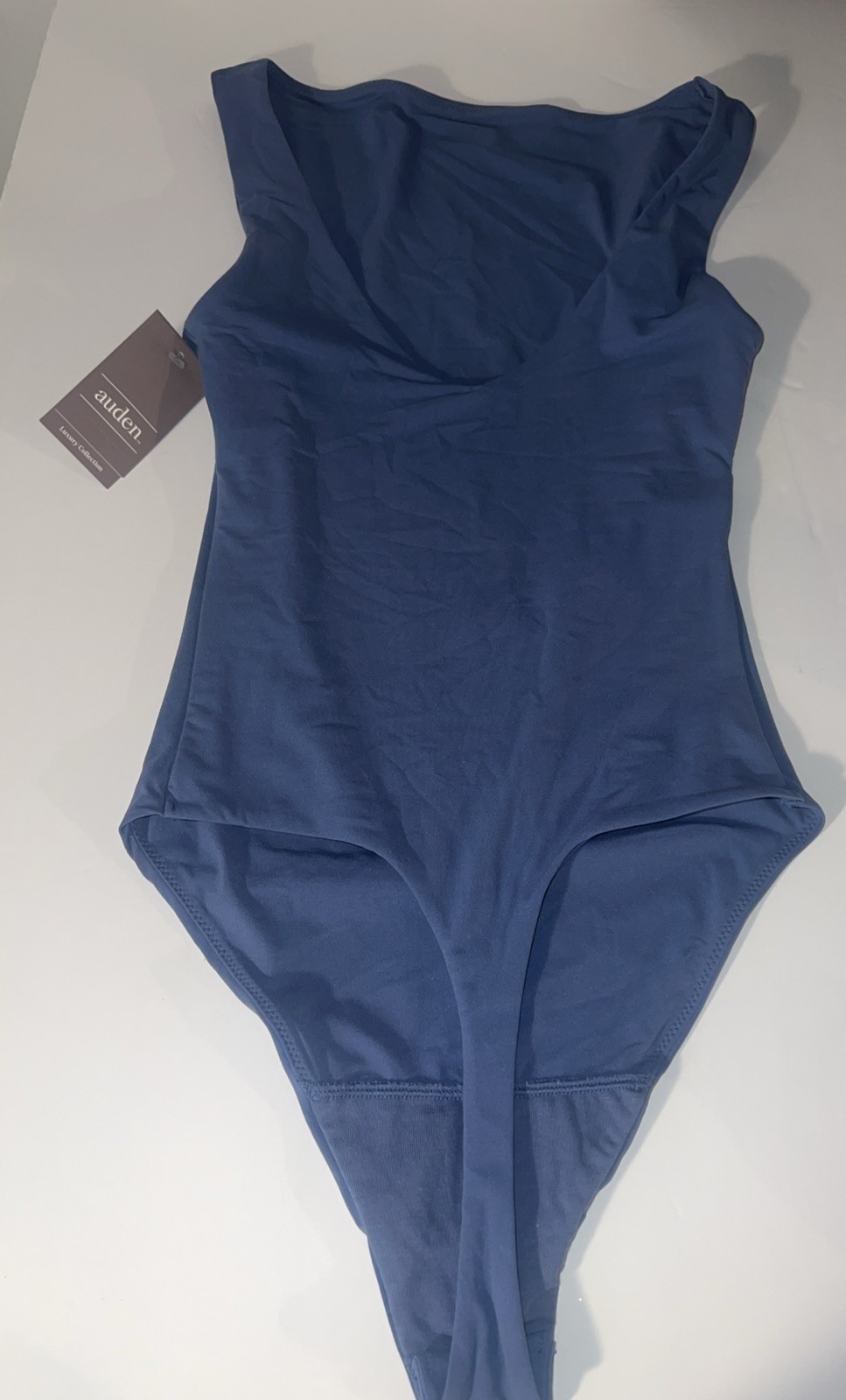 как выглядит Womens Luxe Stretch Boatneck Thong Bodysuit - Auden dark blue size Small фото