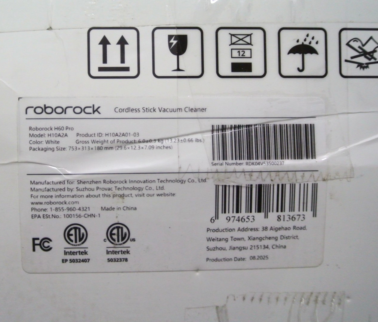 Roborock H60 Pro Cordless Stick Vacuum 170AW Suction 80Min Runtime LED Pet Hair