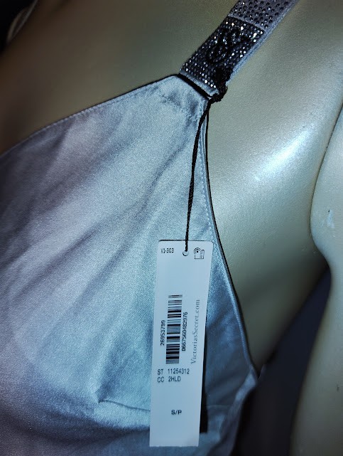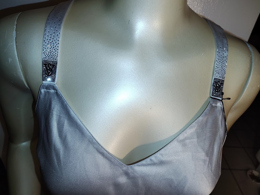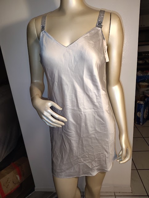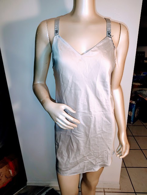 как выглядит S/P - VICTORIAS SECRET SHINE BLING STRAP SATIN SLIP/CHEMISE GOWN - SILVER - NWT фото