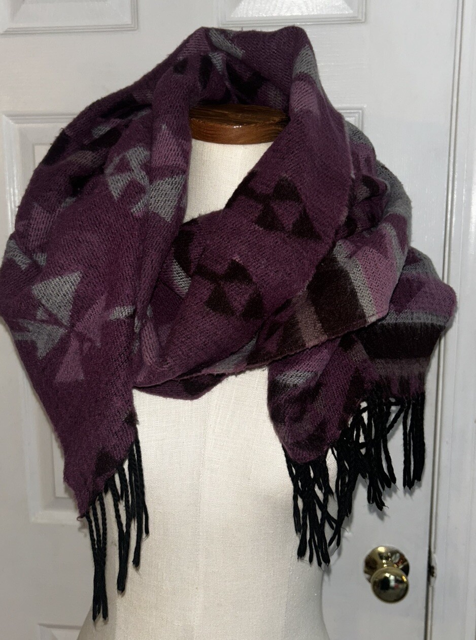 как выглядит Fendi Fringed Aztec Print Scarf Shawl Made In Italy 74" Long Acrylic фото