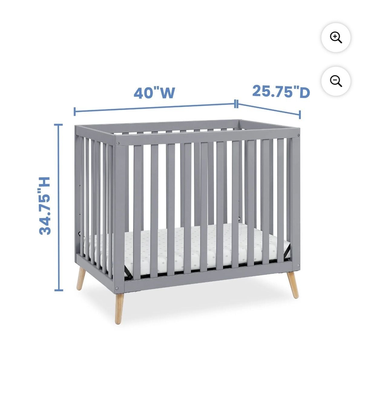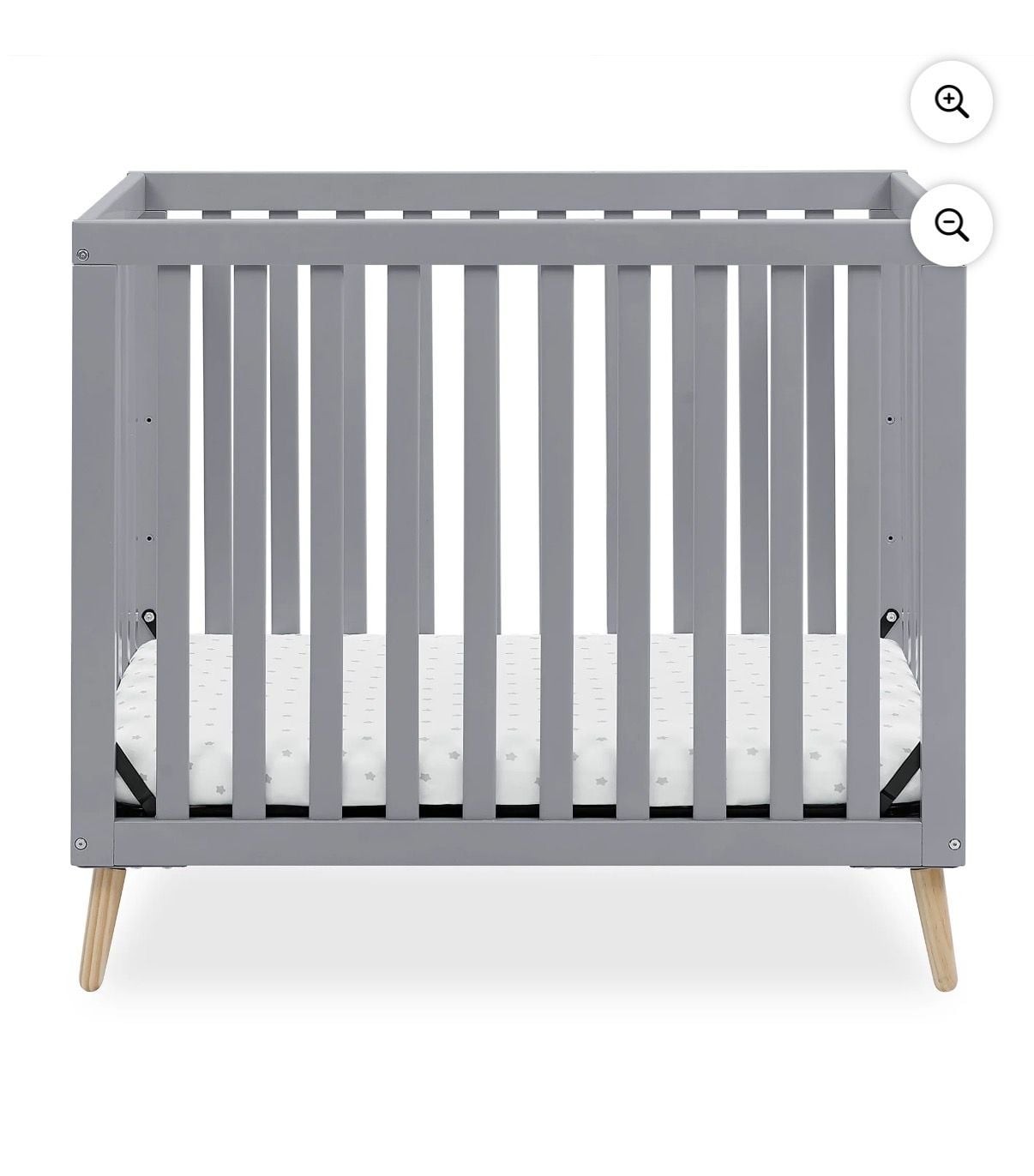 Delta Children Essex Convertible Mini Baby Crib with mattress, Grey/Natural