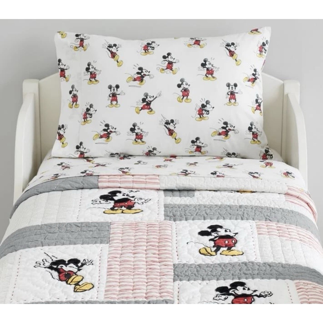 как выглядит Pottery Barn Kids DISNEY Mickey Mouse Patchwork Quilt Twin Sham Organic Sheet 3P фото