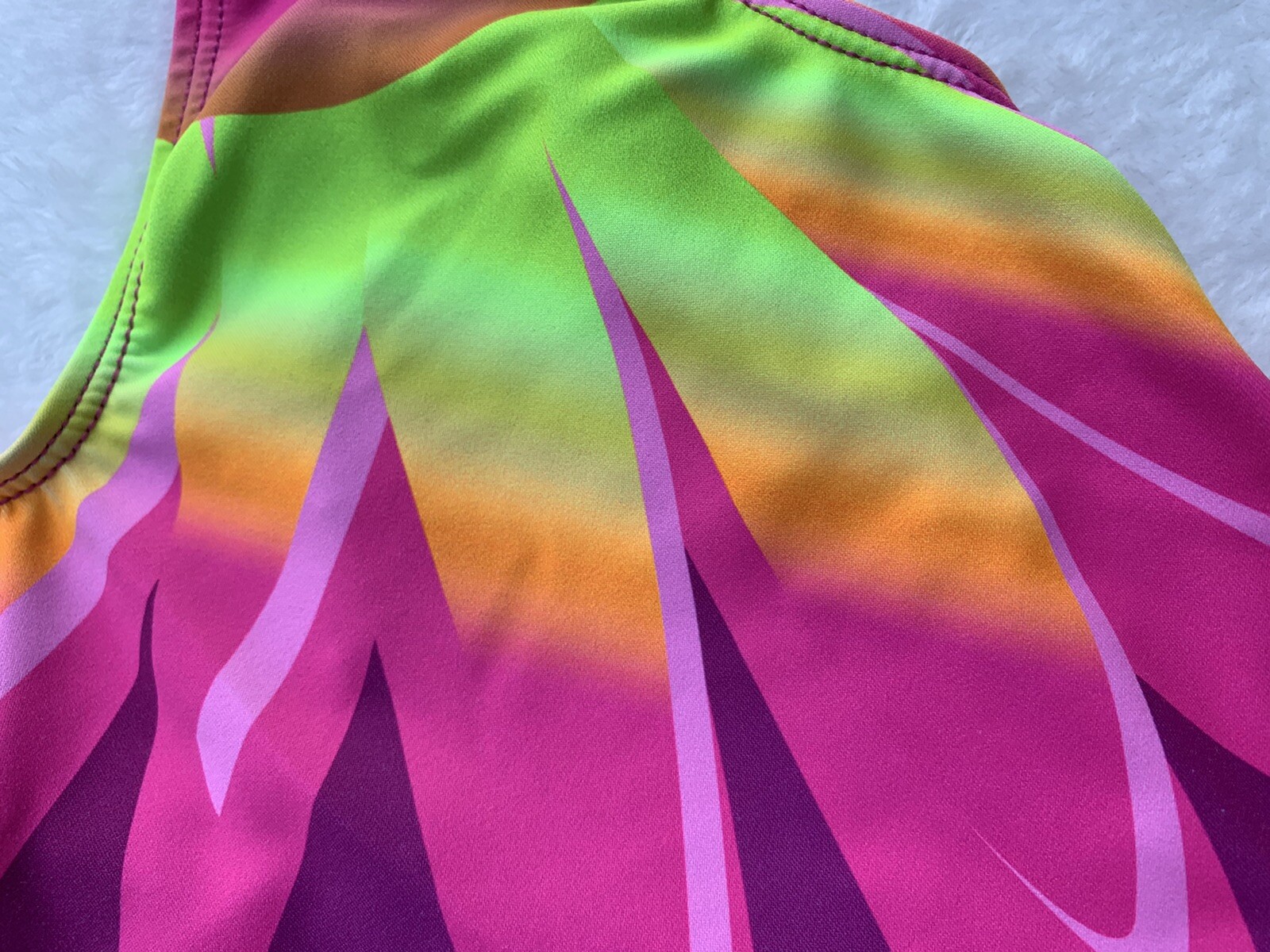 GK Elite Gymnastic Leotard BRIGHT BLOOMS Purple Pink Neon FLOWER Tank SIZE: AS