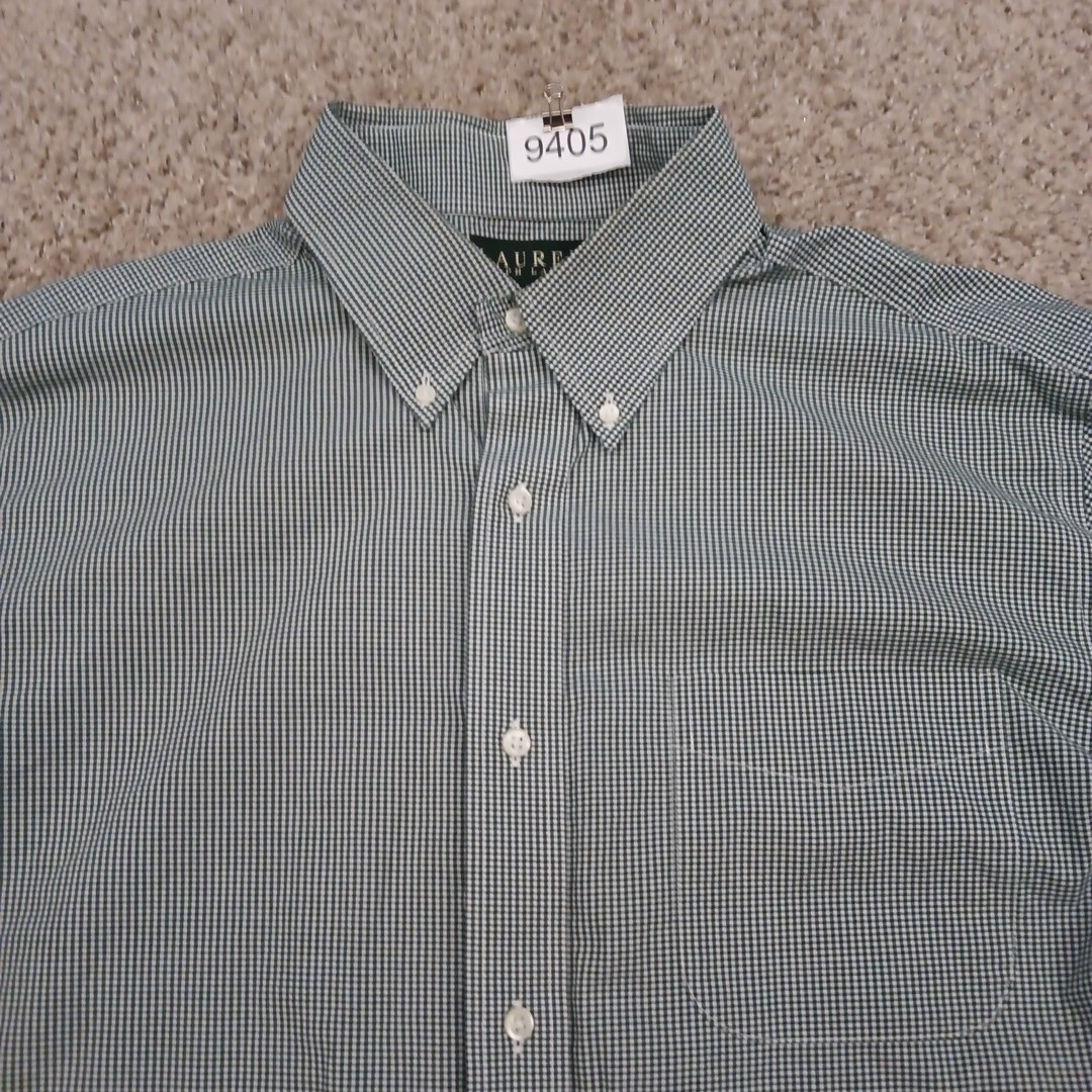 как выглядит Lauren Ralph Lauren Shirt Mens Size 17 Green Plaid Long Sleeve Button Down фото