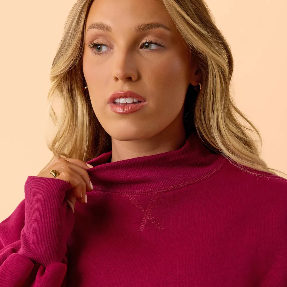 Blogilates Women's Marshmallow Mockneck Sweatshirt - Burgundy L
