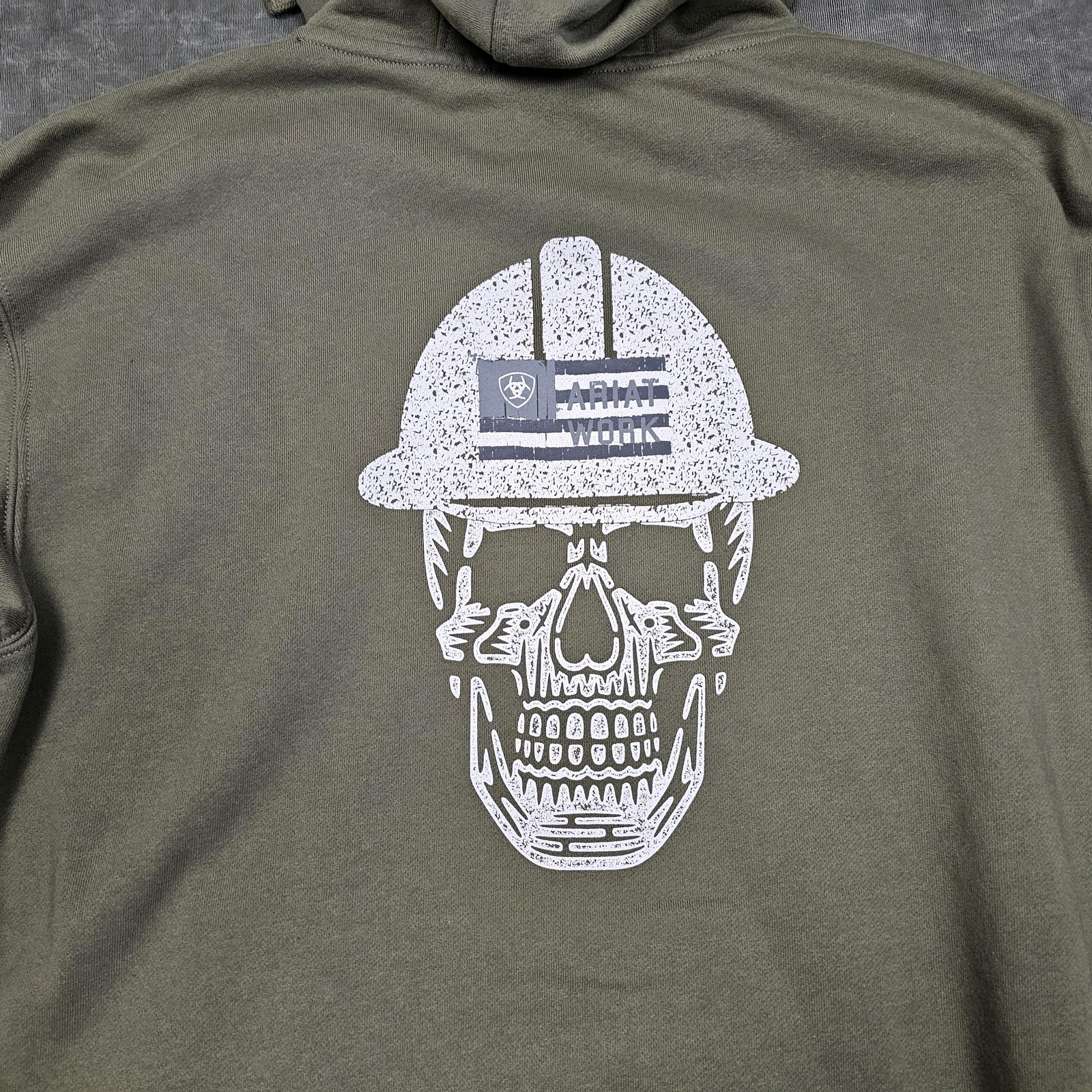 Ariat Hoodie Mens Medium Green Rebar Roughneck Pullover Skull Work Graphic Back