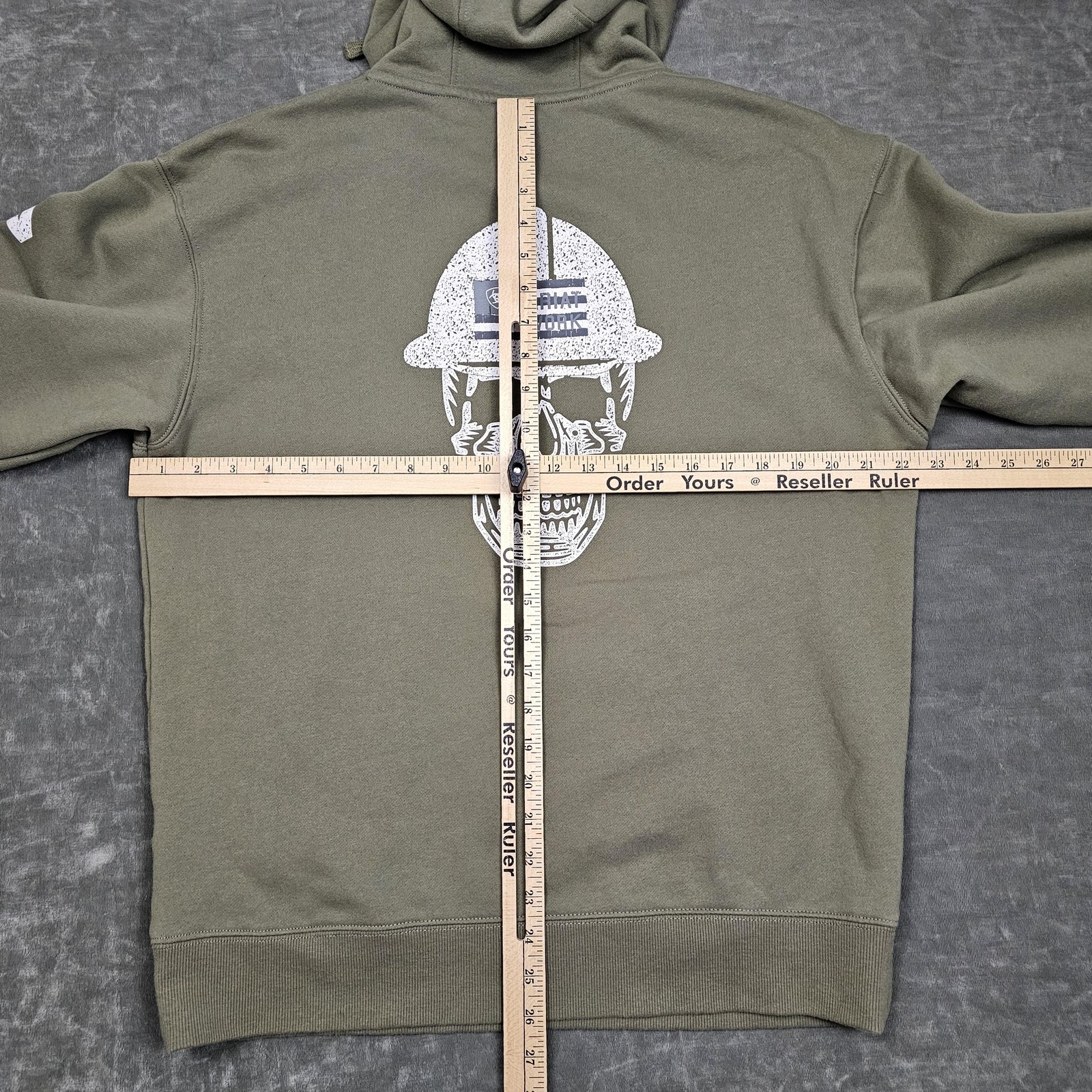 как выглядит Ariat Hoodie Mens Medium Green Rebar Roughneck Pullover Skull Work Graphic Back фото