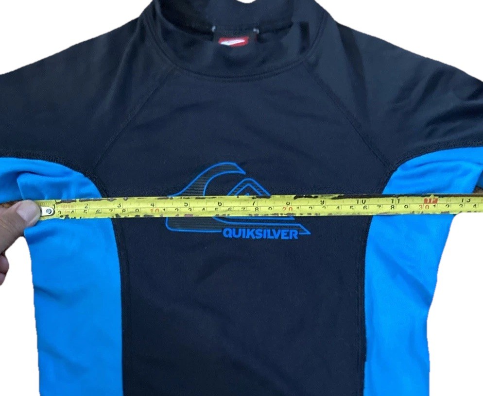 как выглядит Quiksilver Black Blue Short Sleeve Rash Guard Shirt Kids Size 4 фото