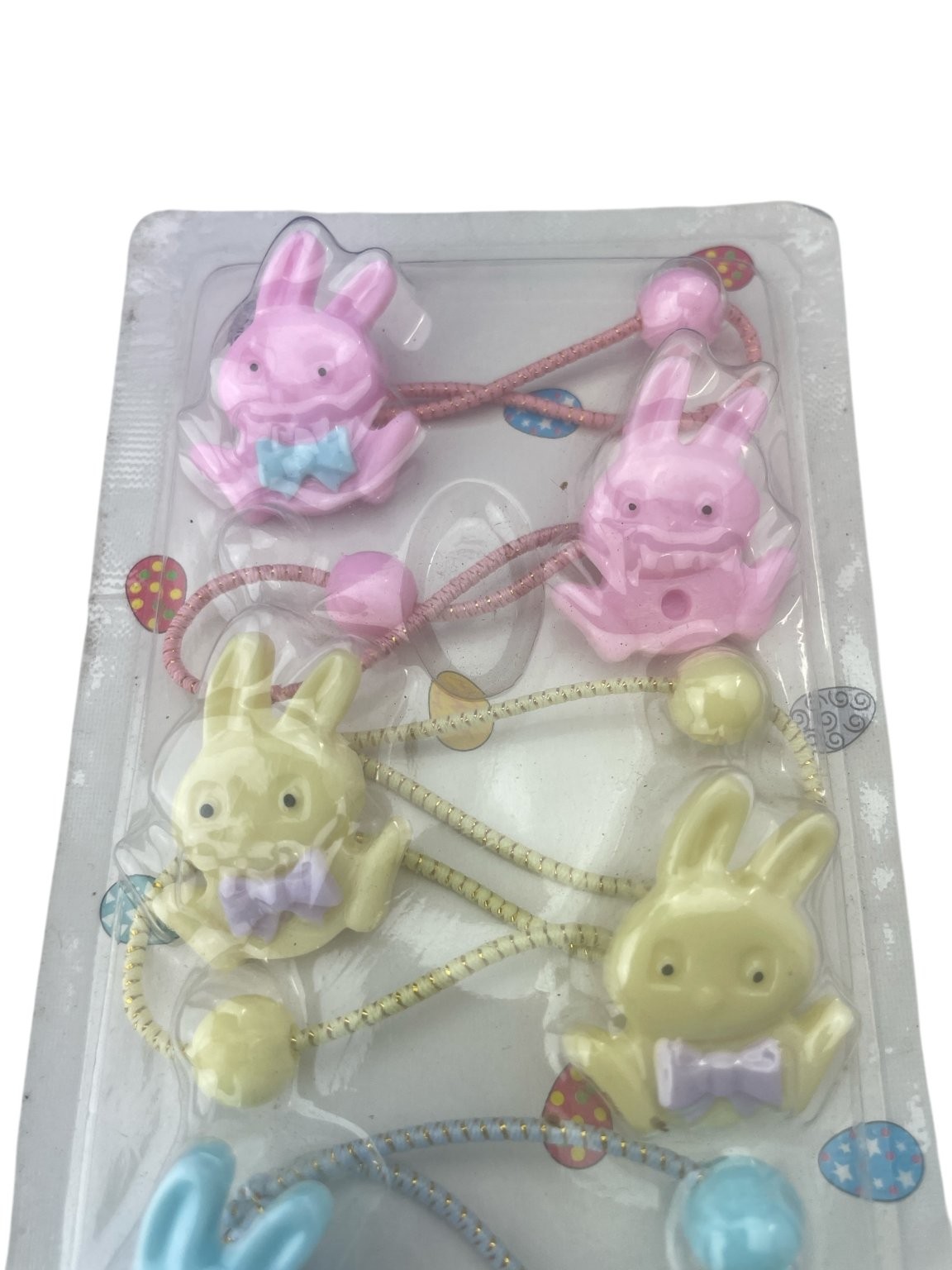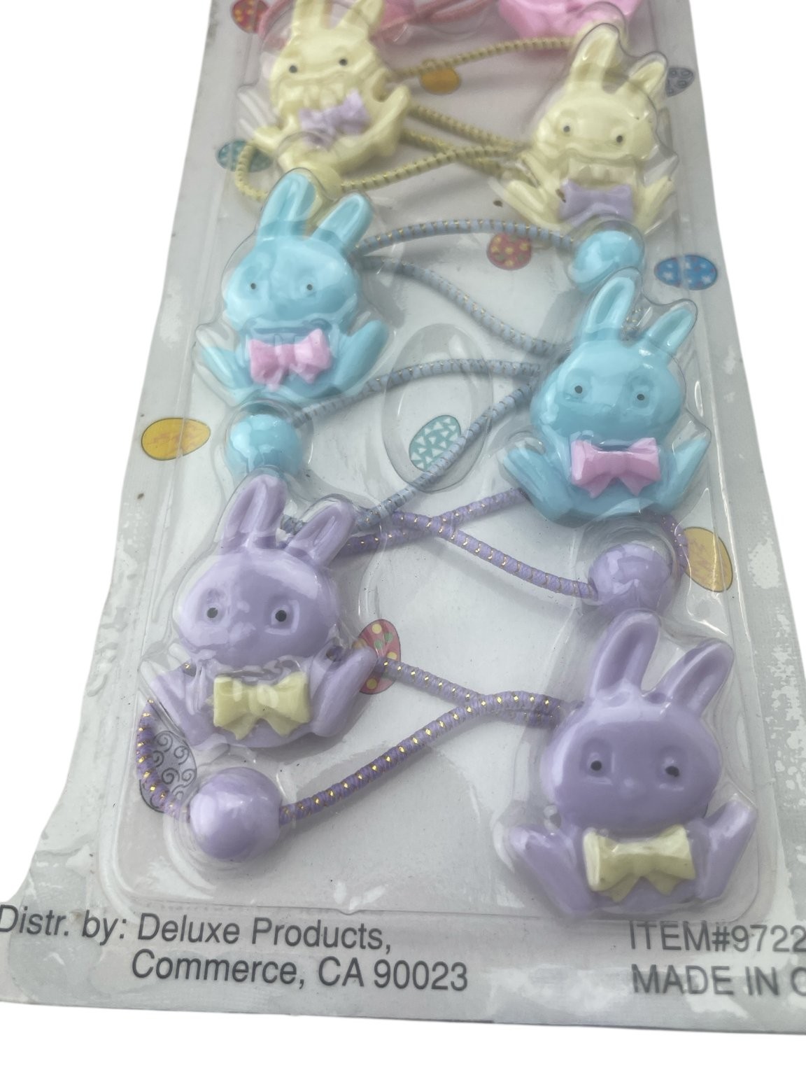 Deluxe Products Bunny Ponytail Holders Girls Pastel Purple Pink Glitter Elastic