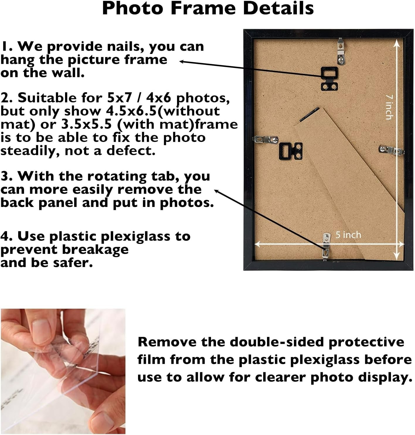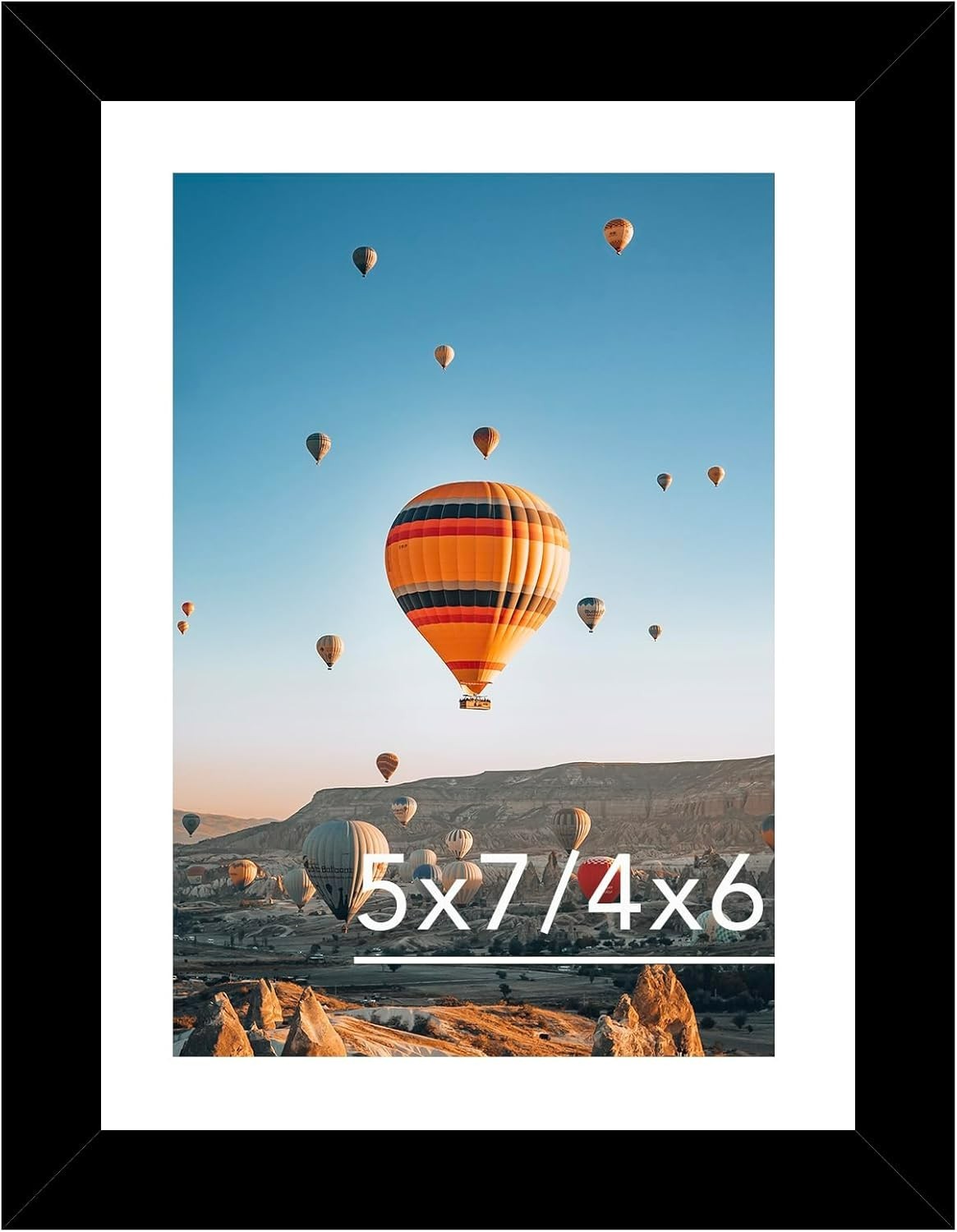5x7 Picture Frame Black with 4x6 Mat for Wall Hanging or Tabletop, Display Ph...