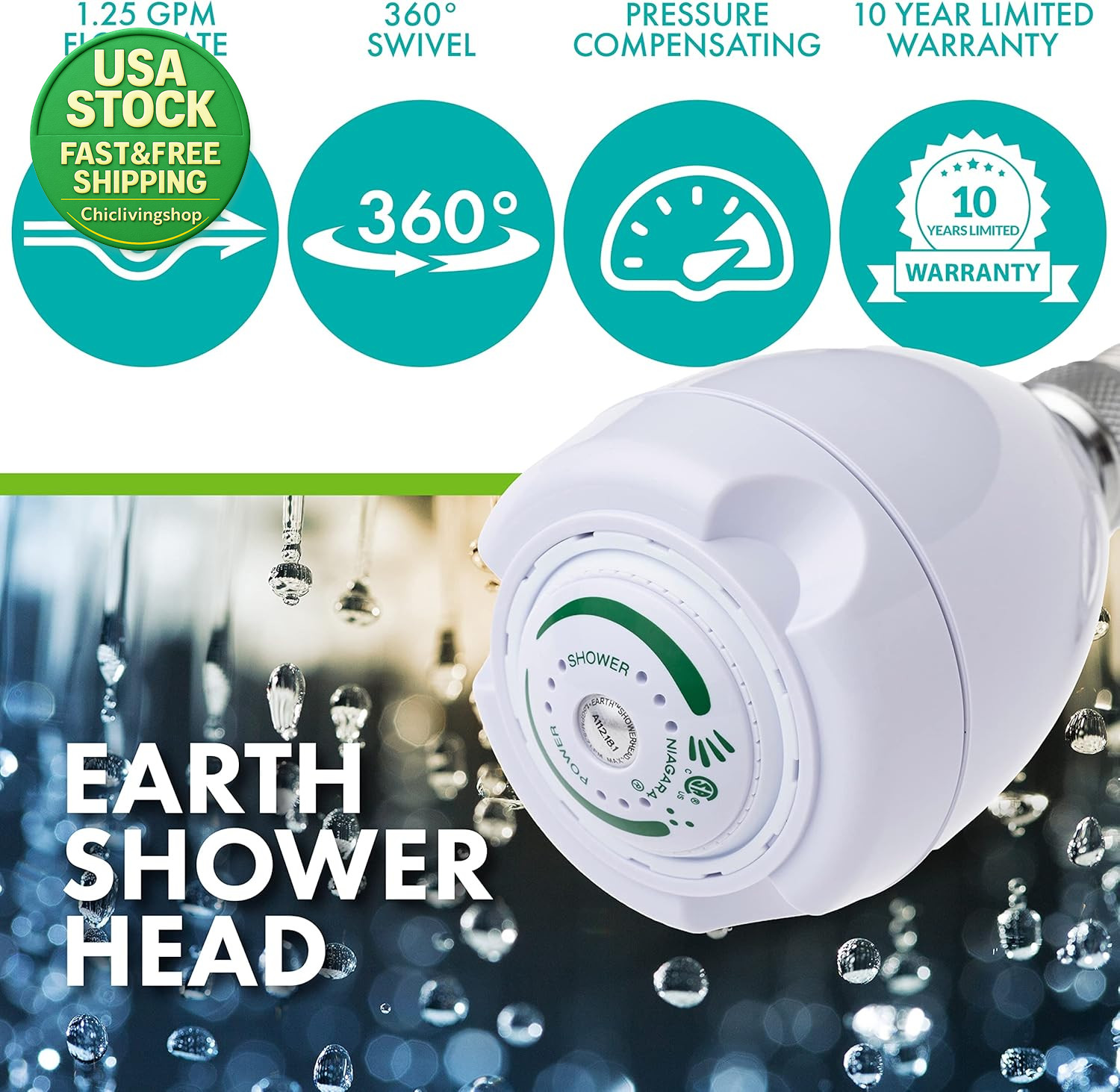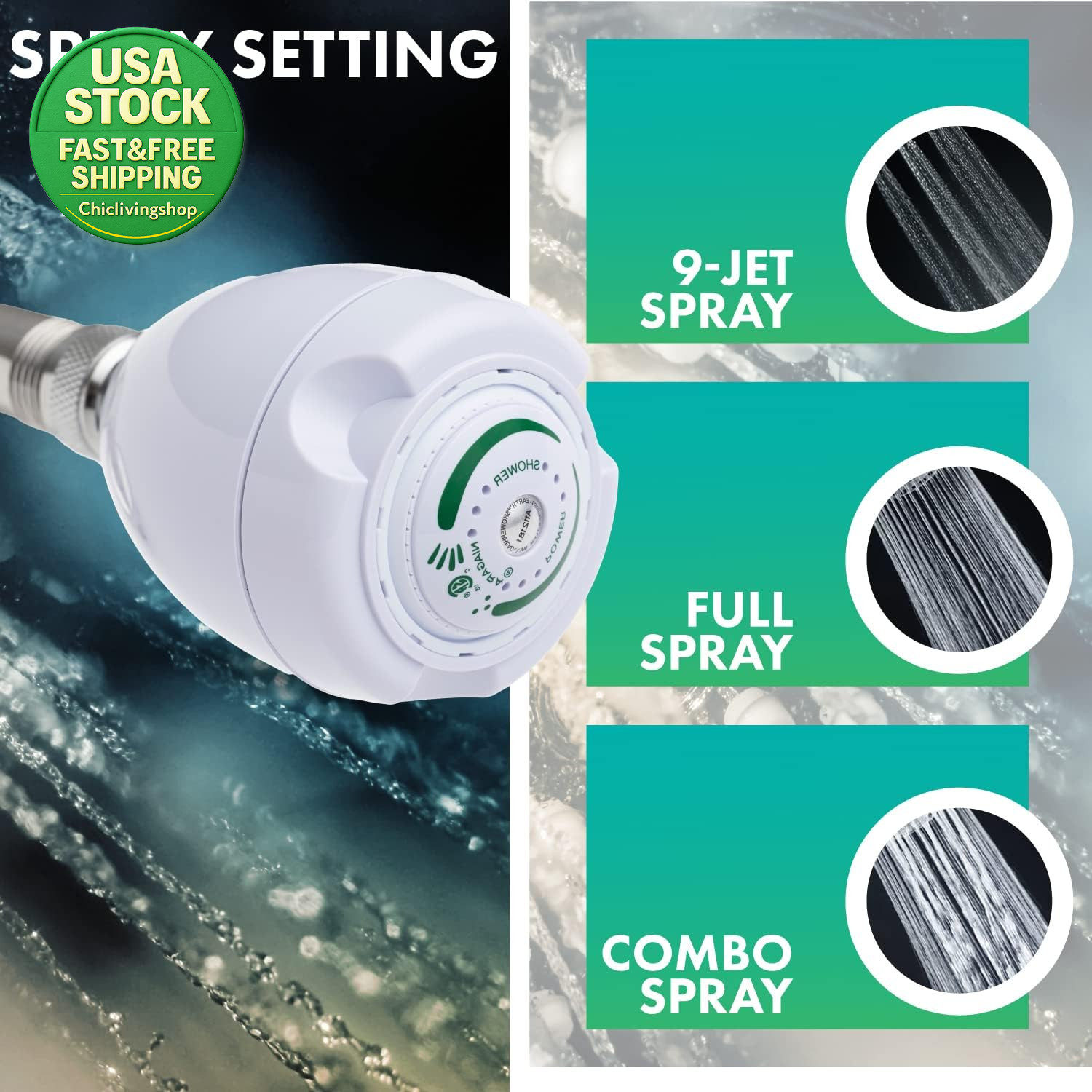 Shower Head 3-Spray 1.25 GPM Adjustable Wall Mount White