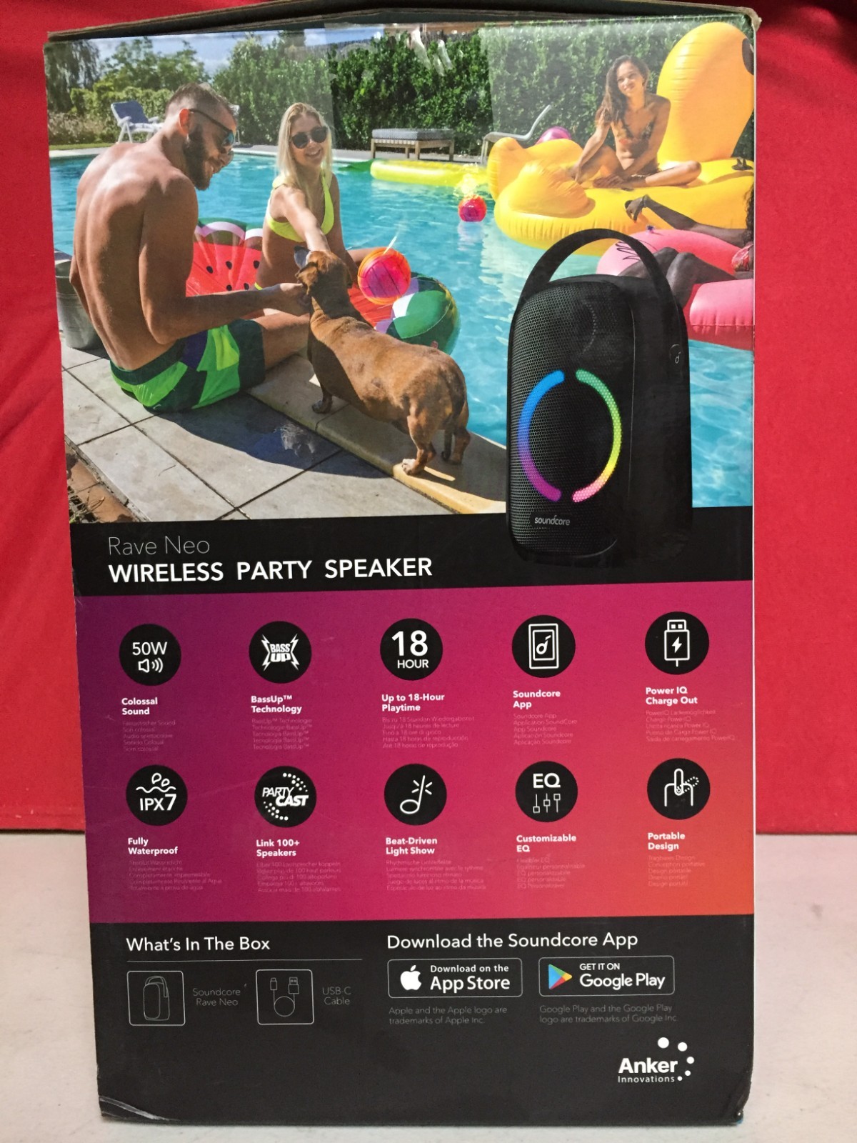 Soundcore Anker LED Rave Wireless Bluetooth 50w Waterproof Party Proof Speaker