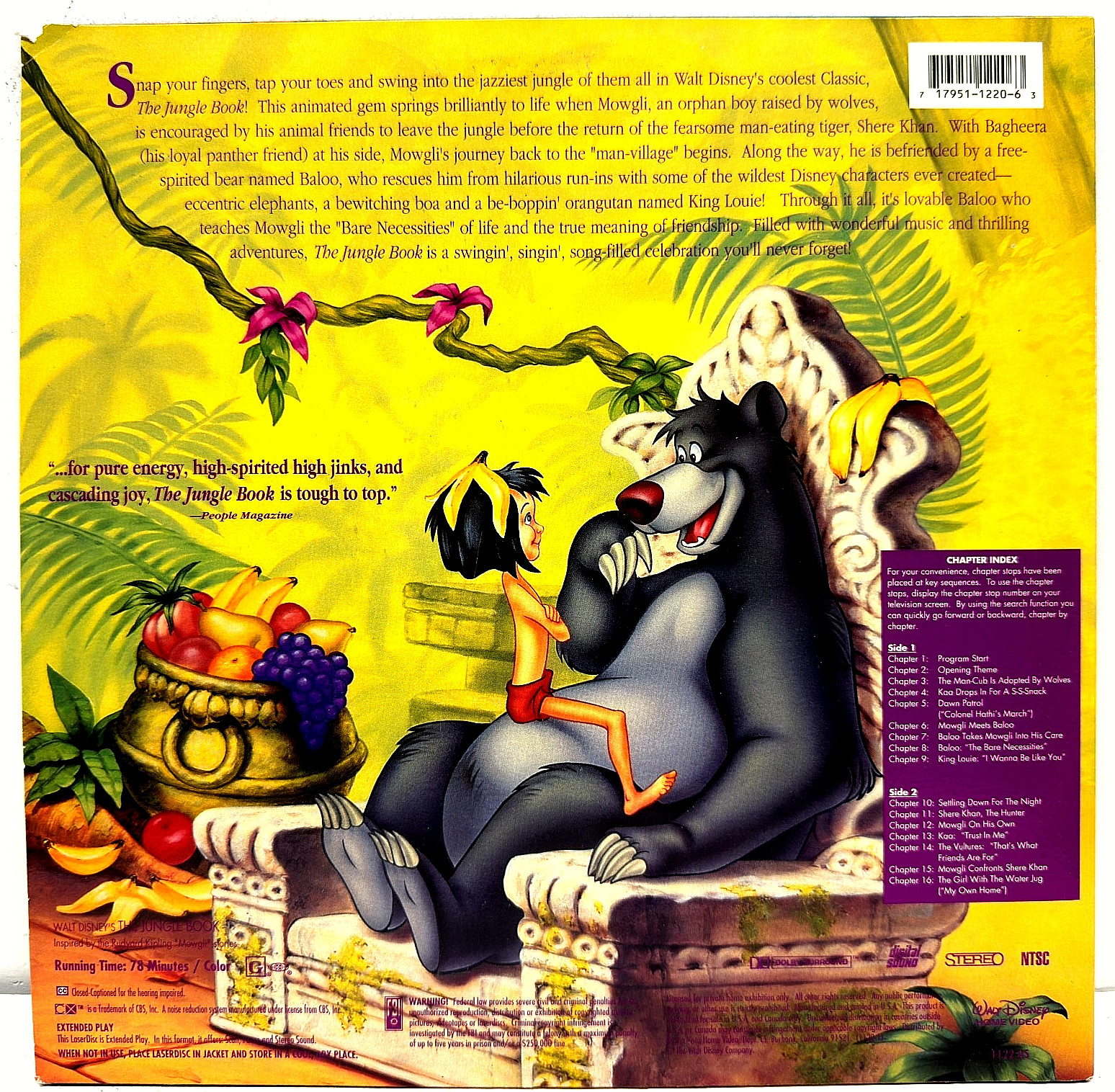 The Jungle Book Laserdisc 1992 Walt Disney Classic Open-Matte