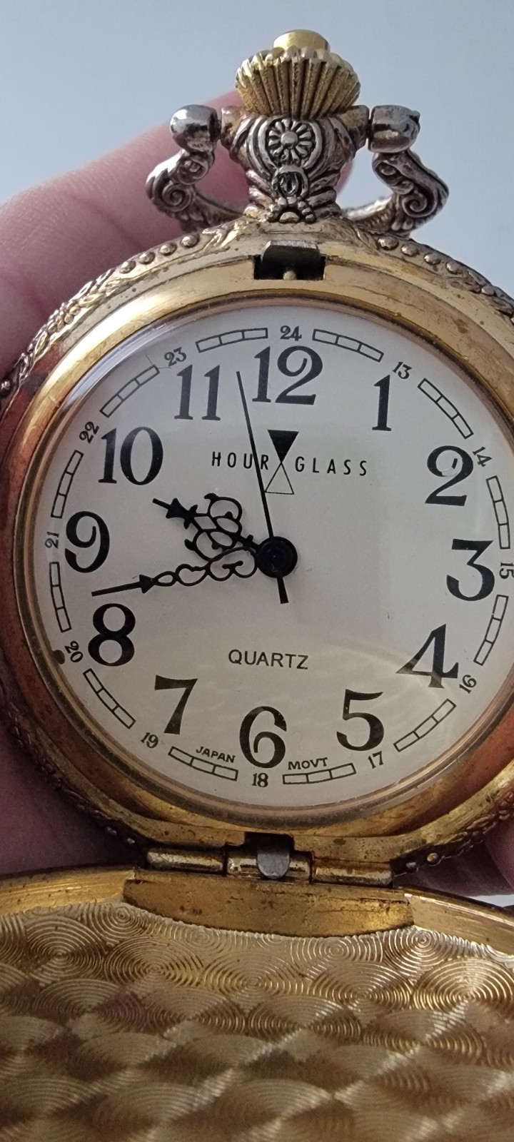 как выглядит Vtg Pocket Watch Train Locomotive Hour Glass Gold Tone Japan Movt Not Working фото