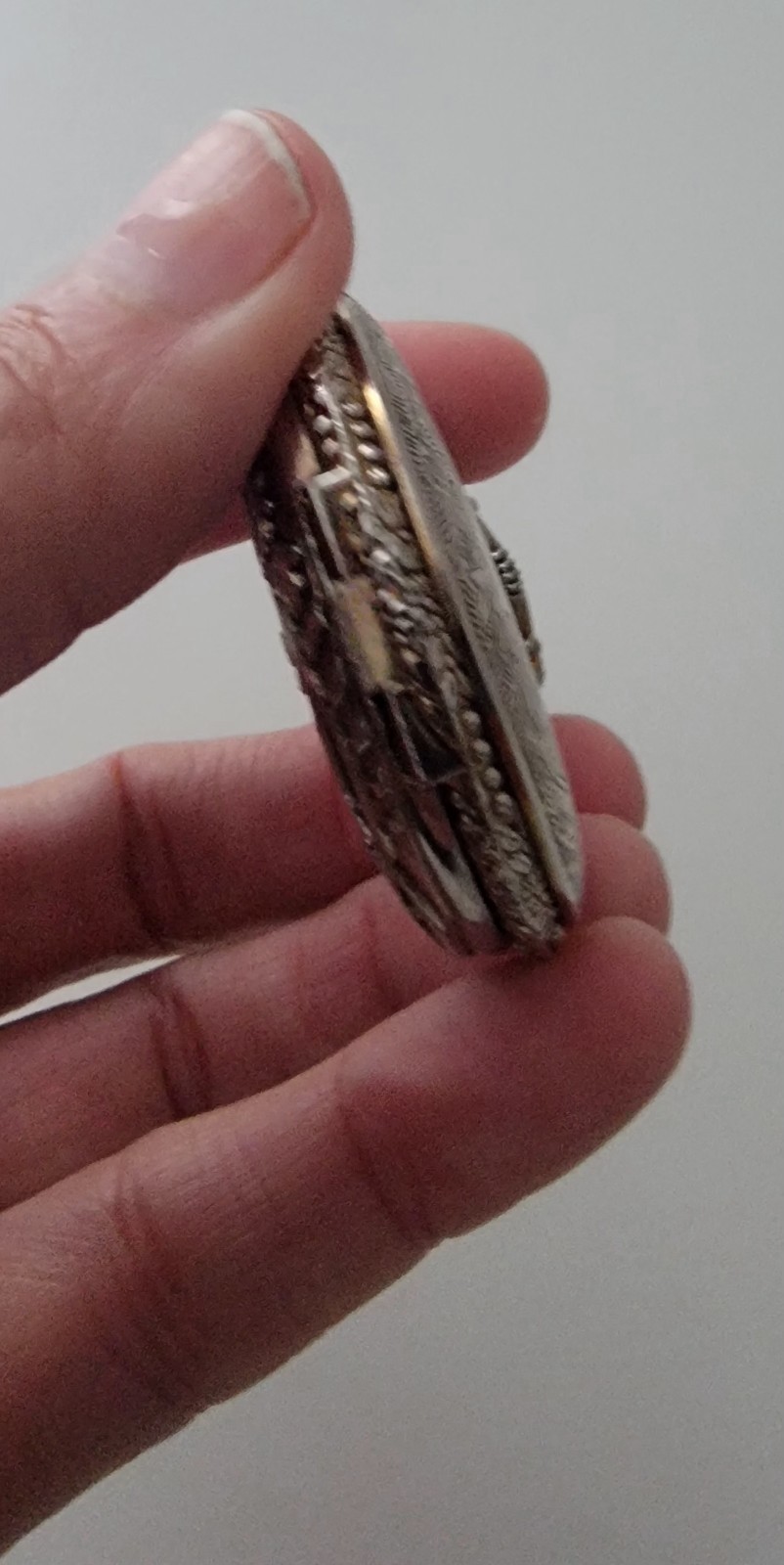 Vtg Pocket Watch Train Locomotive Hour Glass Gold Tone Japan Movt Not Working