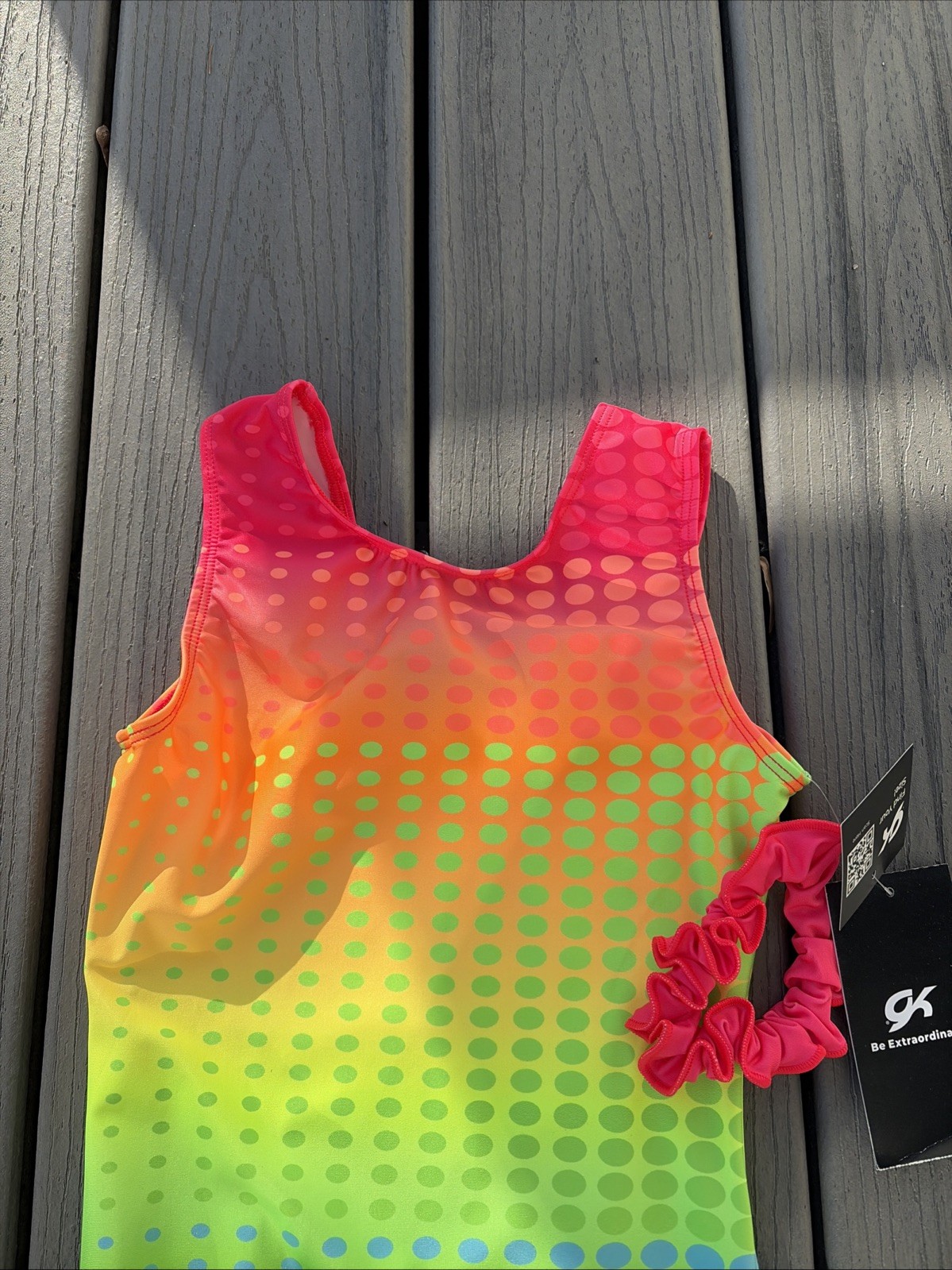 как выглядит NWT GK Elite Gymnastics Leotard CL Child s Large With Hair Scrunchie фото