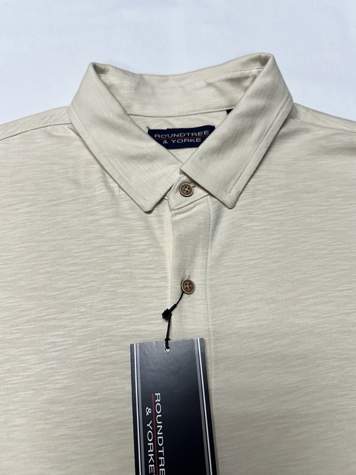 как выглядит Roundtree Yorke Men Shirt XXL /2XL Cotton Blend Jersey Button Short Sleeve Beige фото
