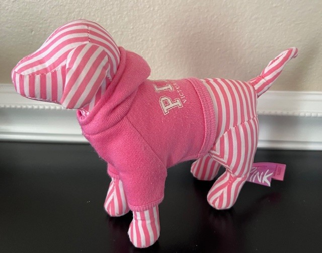 Victoria s Secret PINK Dog Plush Pink Striped Stuffed Animal 7 NEW